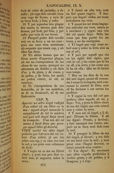 1835年加泰羅尼亞語新約全書 啟示錄 9 章 18 節到 10 章 11 節