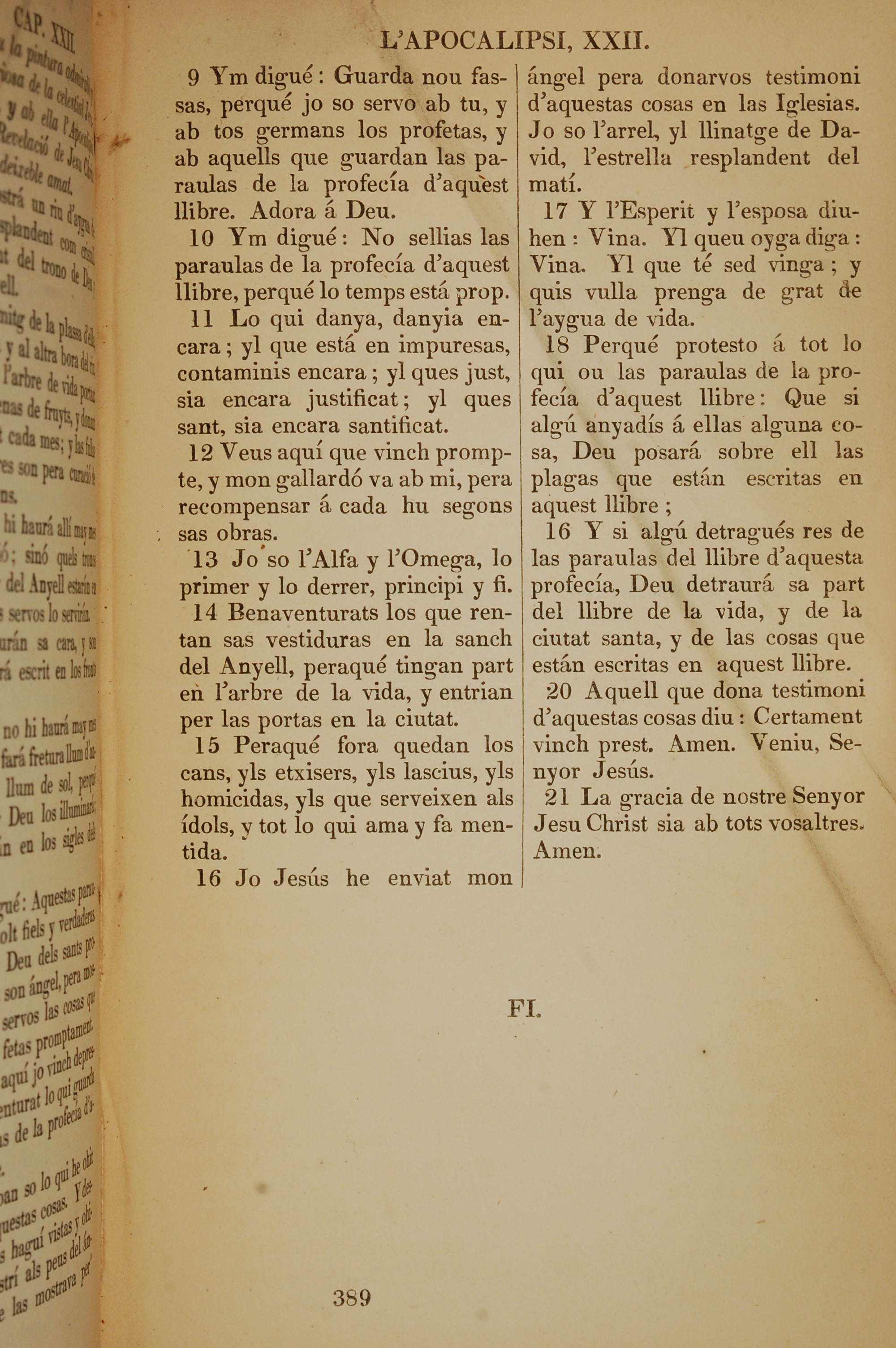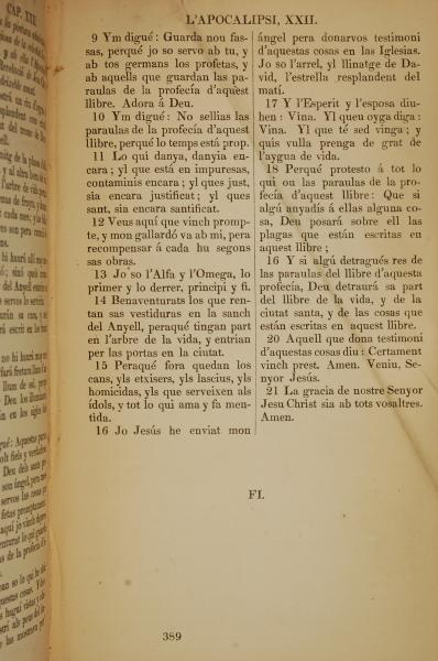 1835年加泰羅尼亞語新約全書 啟示錄 22 章 9 節到 22 章 21 節