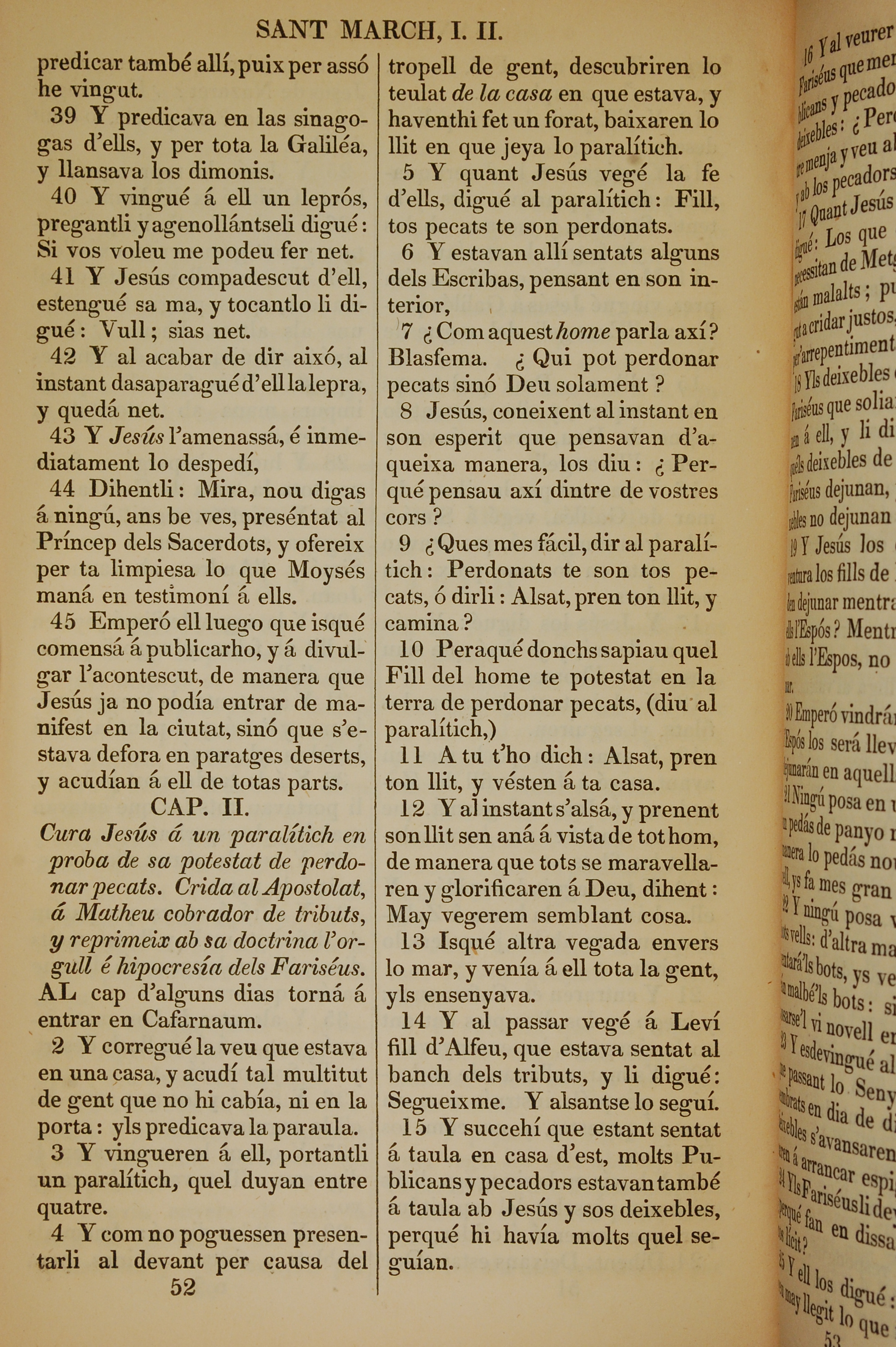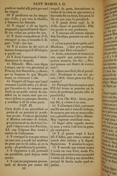 1835年加泰羅尼亞語新約全書 馬可福音 1 章 39 節到 2 章 15 節