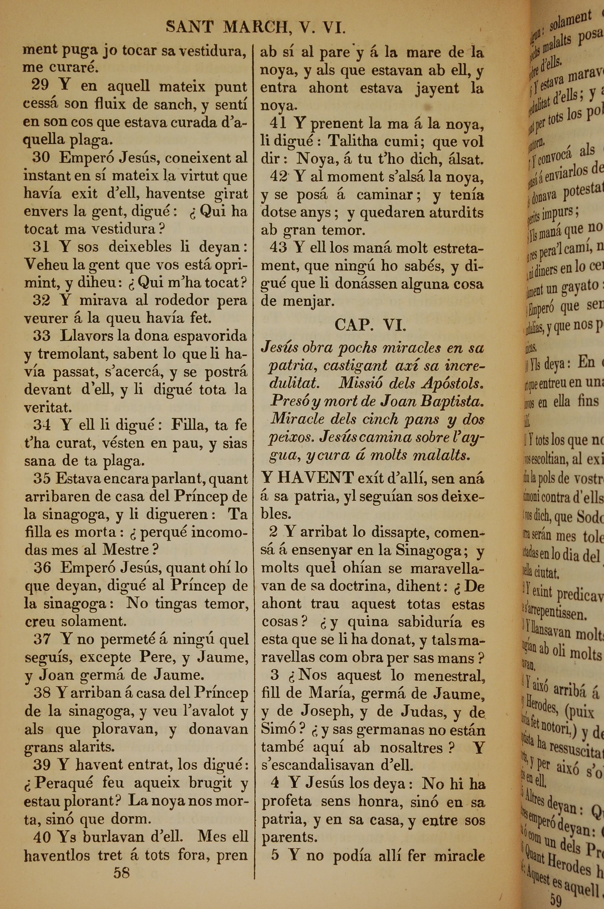 1835年加泰羅尼亞語新約全書 馬可福音 5 章 29 節到 6 章 5 節