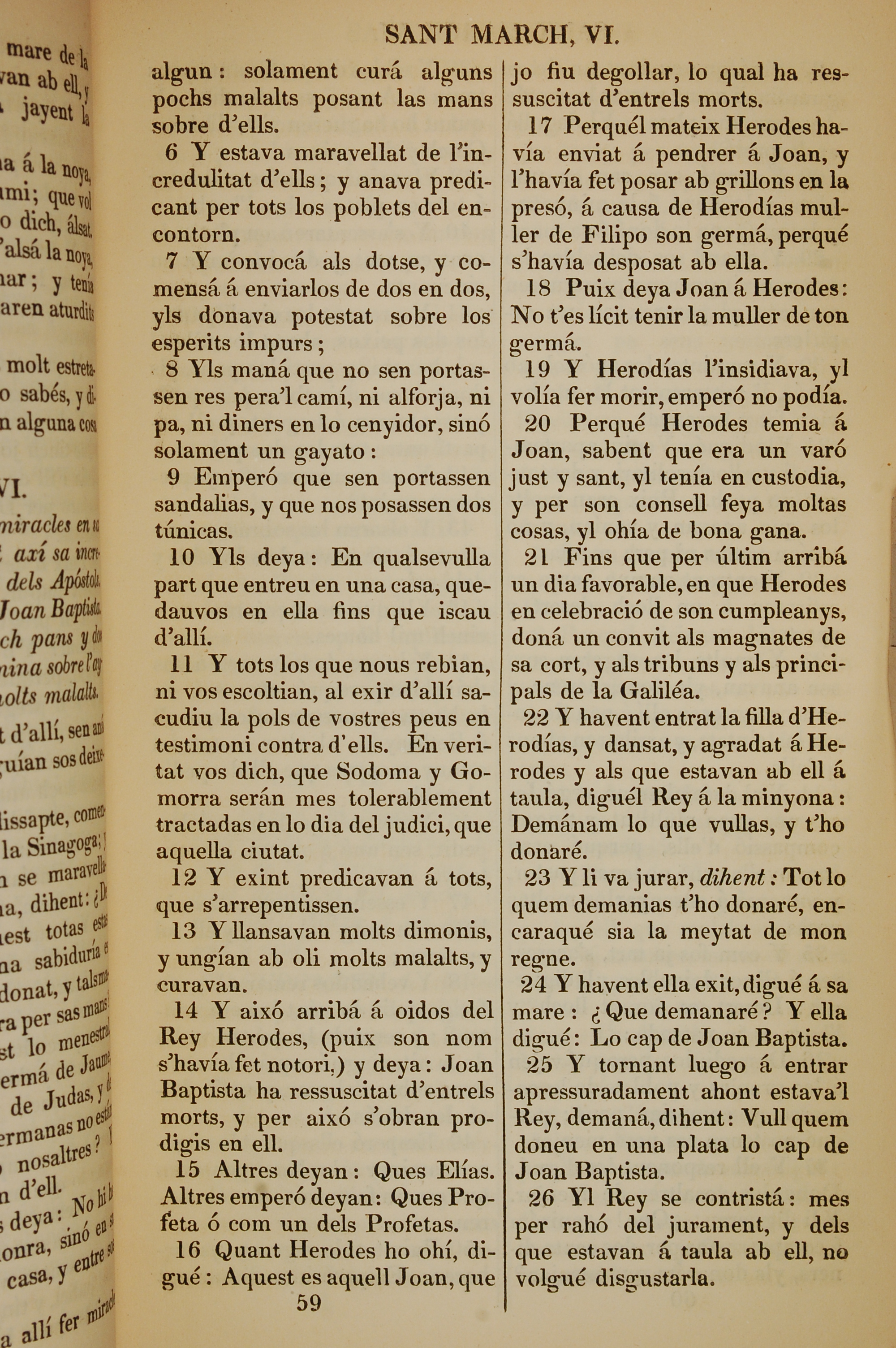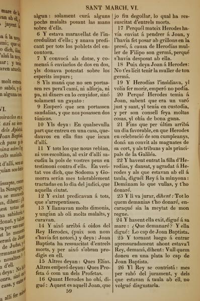 1835年加泰羅尼亞語新約全書 馬可福音 6 章 6 節到 6 章 26 節