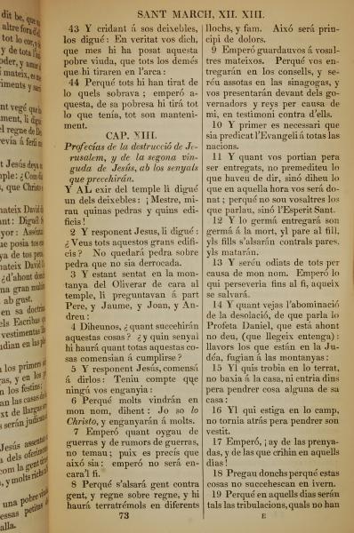 1835年加泰羅尼亞語新約全書 馬可福音 12 章 43 節到 13 章 19 節