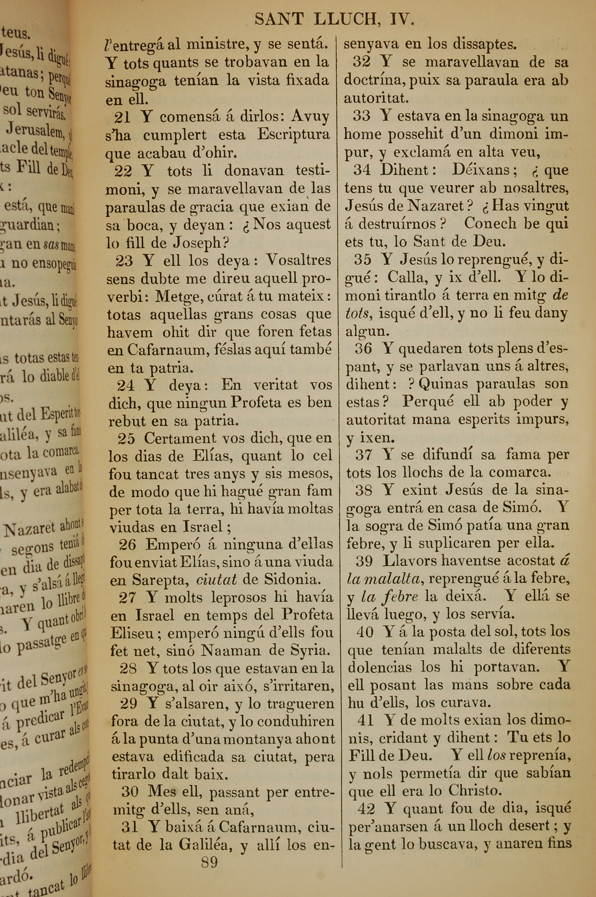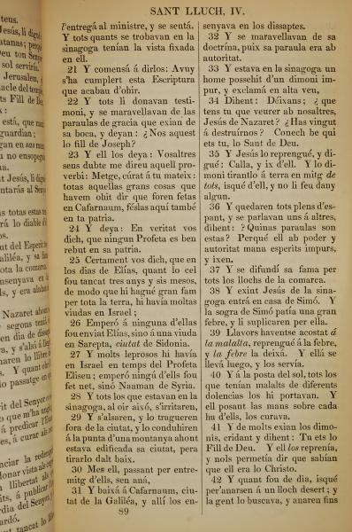1835年加泰羅尼亞語新約全書 路加福音 4 章 21 節到 4 章 42 節
