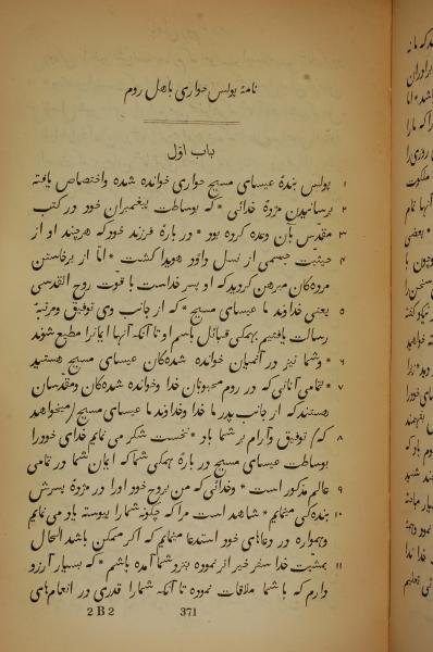 1837年New Testament Translated From the Original Greek into Persian 羅馬書 1 章 1 節到 1 章 11 節