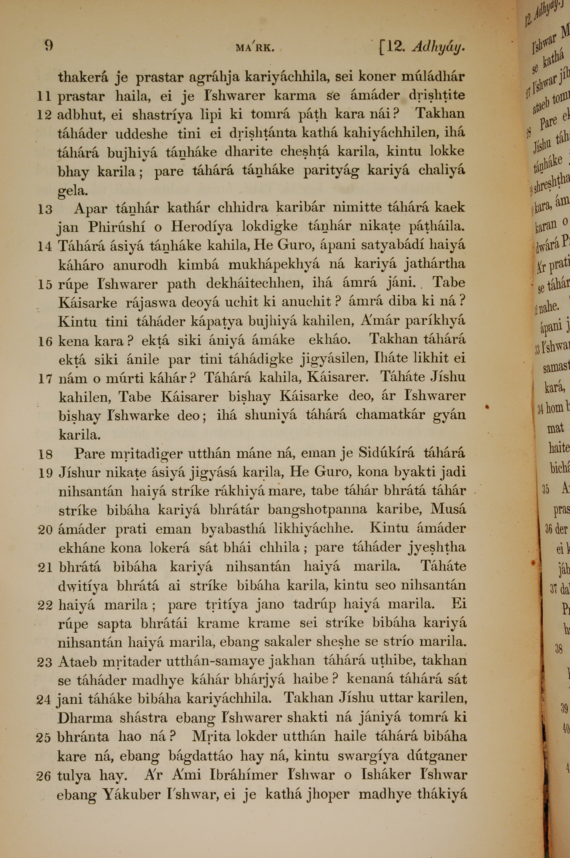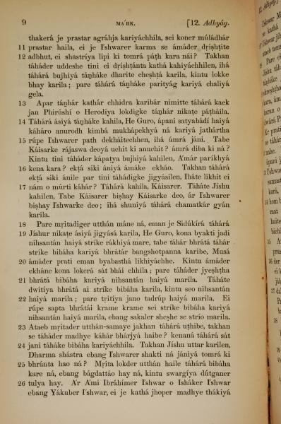 1839年孟加拉語新約全書 馬可福音 12 章 11 節到 12 章 26 節