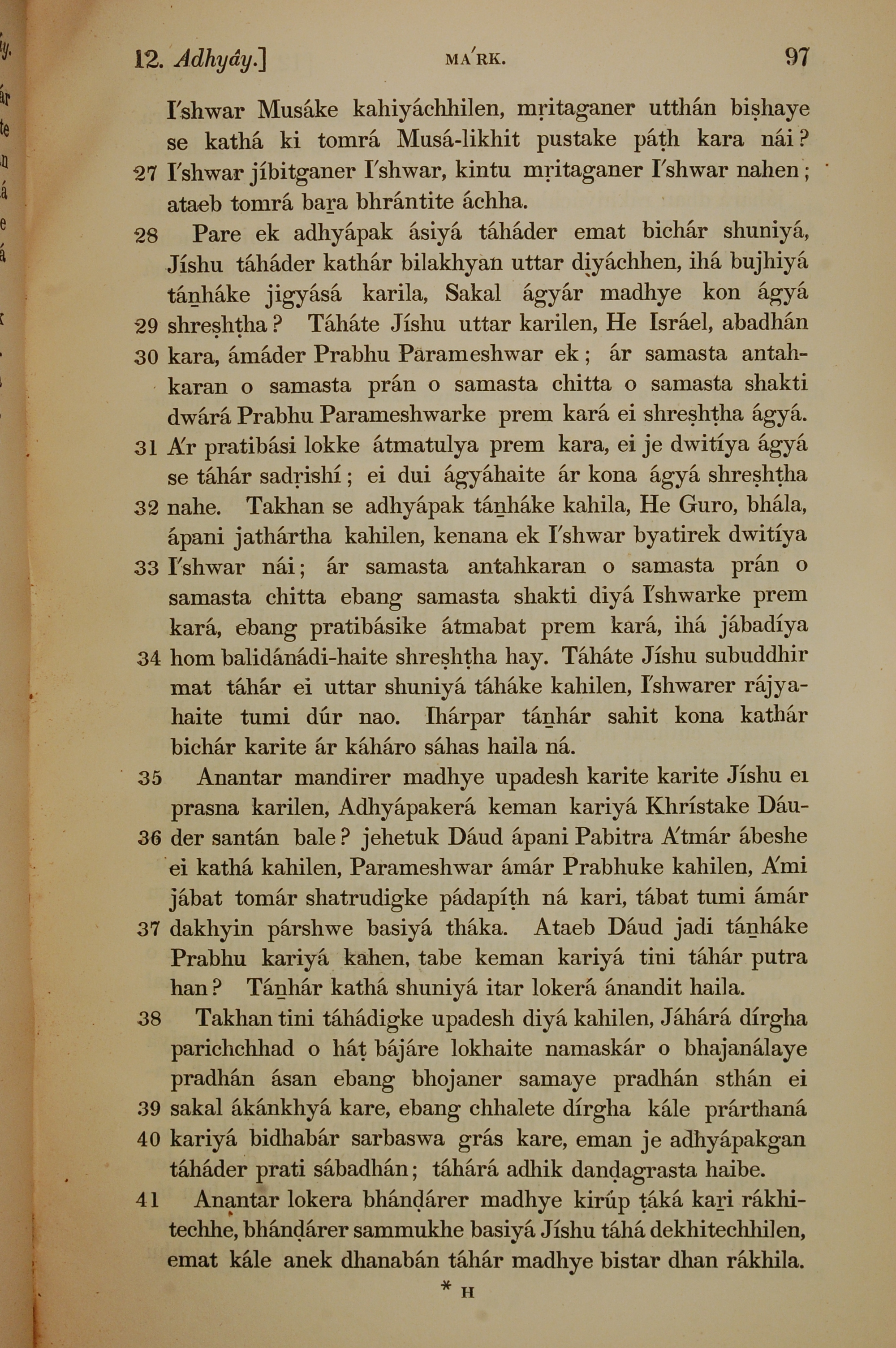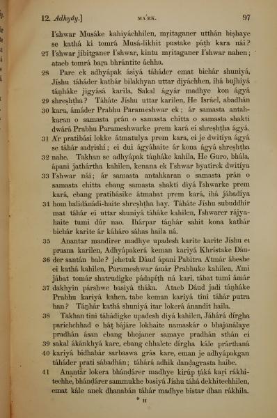 1839年孟加拉語新約全書 馬可福音 12 章 27 節到 12 章 41 節