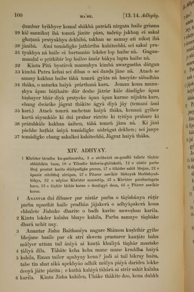 1839年孟加拉語新約全書 馬可福音 13 章 29 節到 14 章 6 節