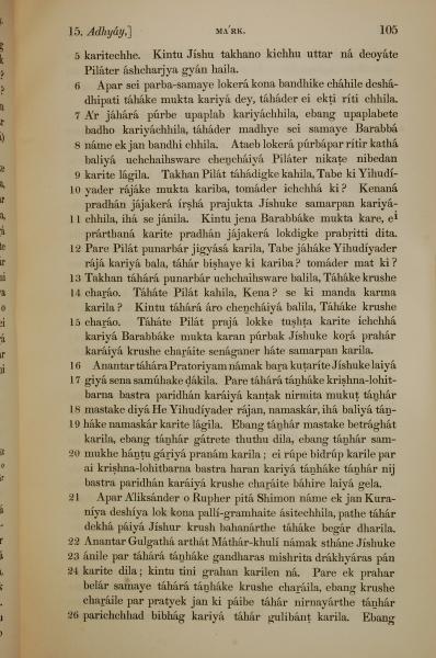 1839年孟加拉語新約全書 馬可福音 15 章 5 節到 15 章 26 節