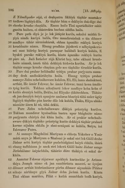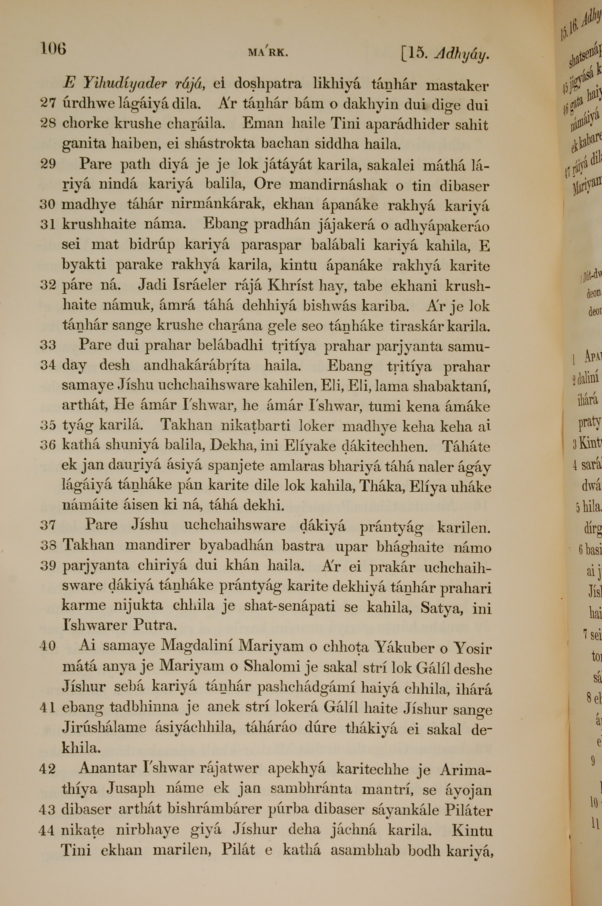 1839年孟加拉語新約全書 馬可福音 15 章 27 節到 15 章 44 節