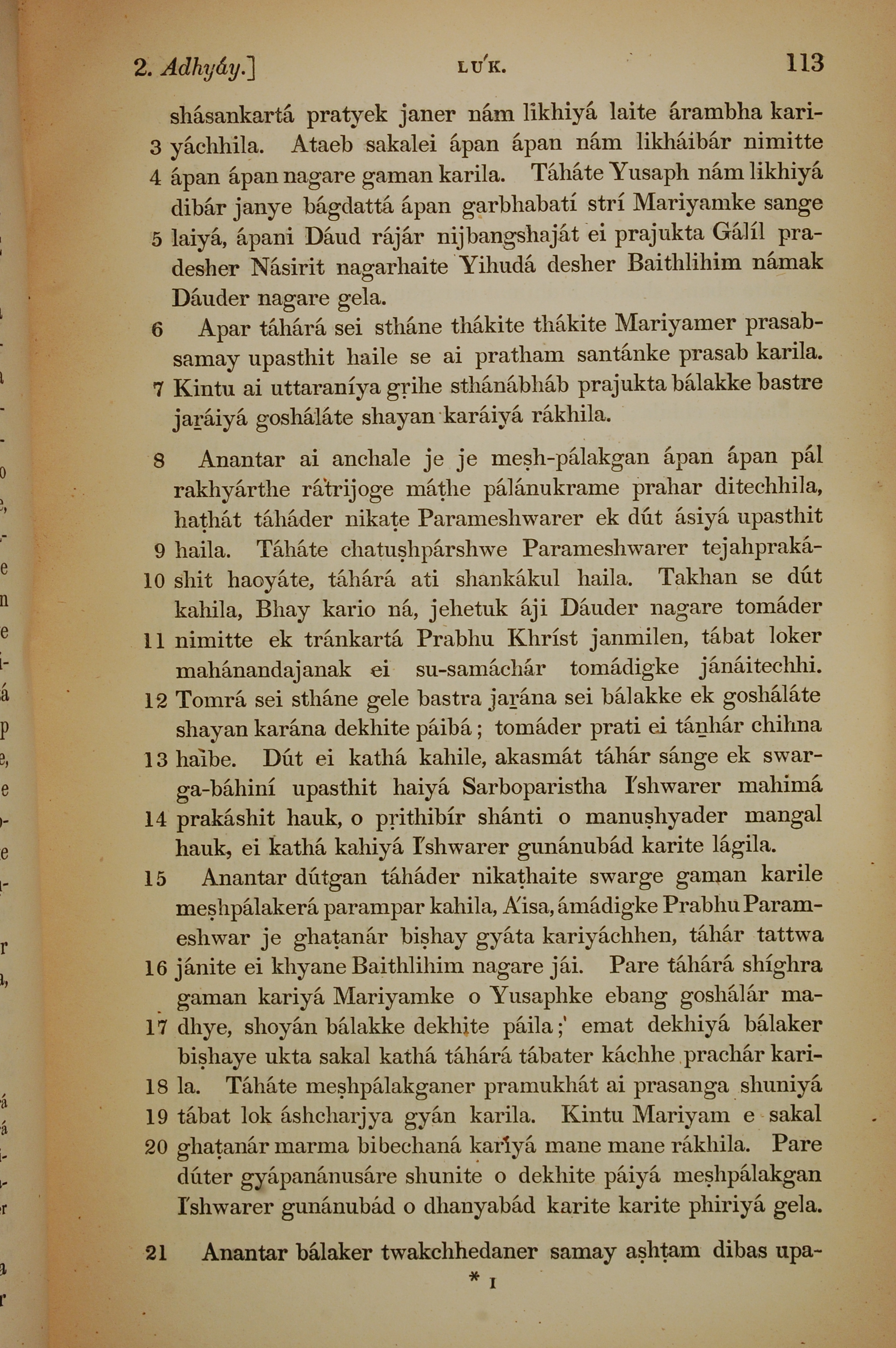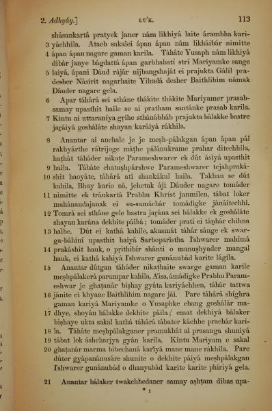 1839年孟加拉語新約全書 路加福音 2 章 3 節到 2 章 21 節