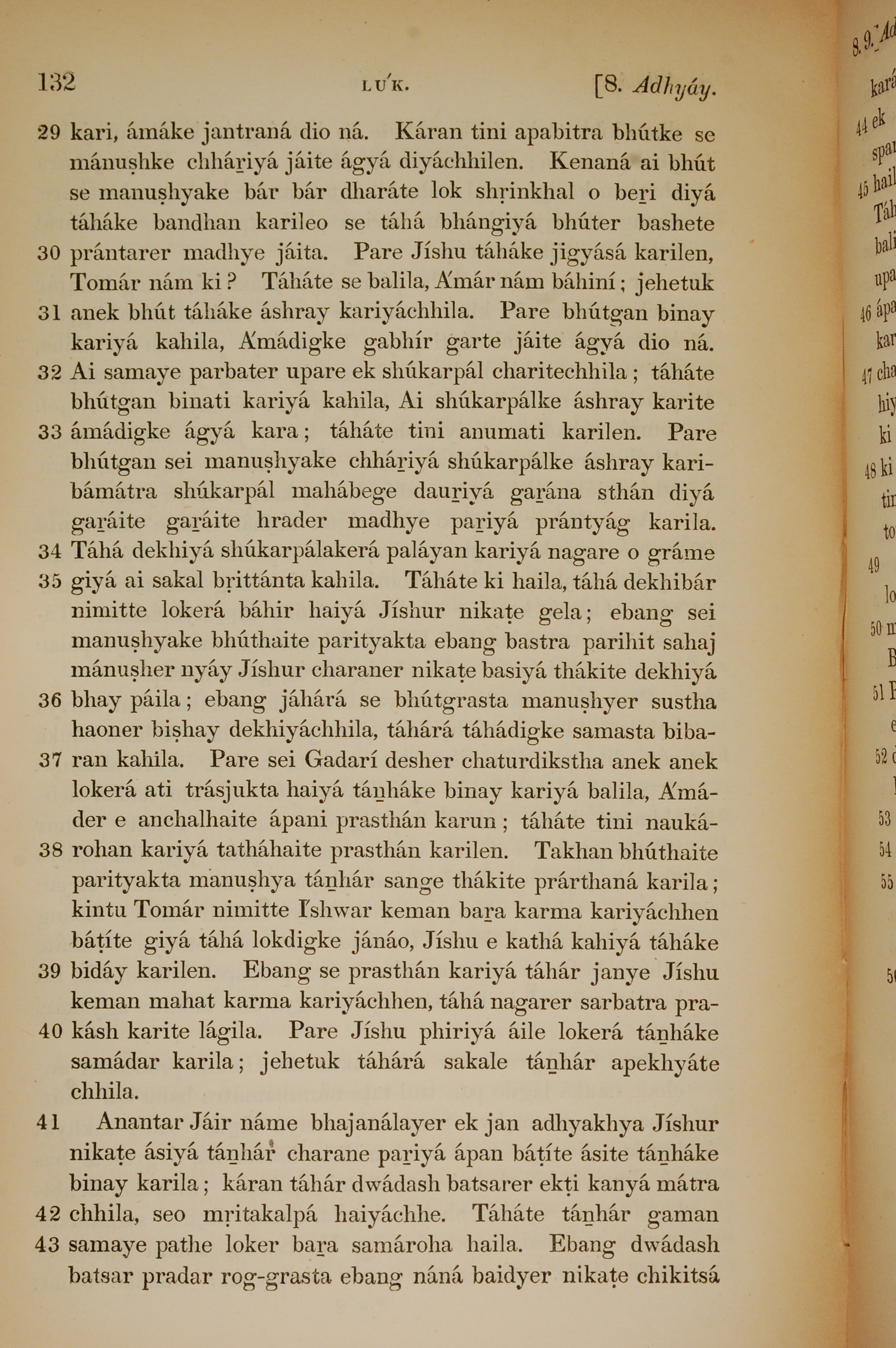 1839年孟加拉語新約全書 路加福音 8 章 29 節到 8 章 43 節