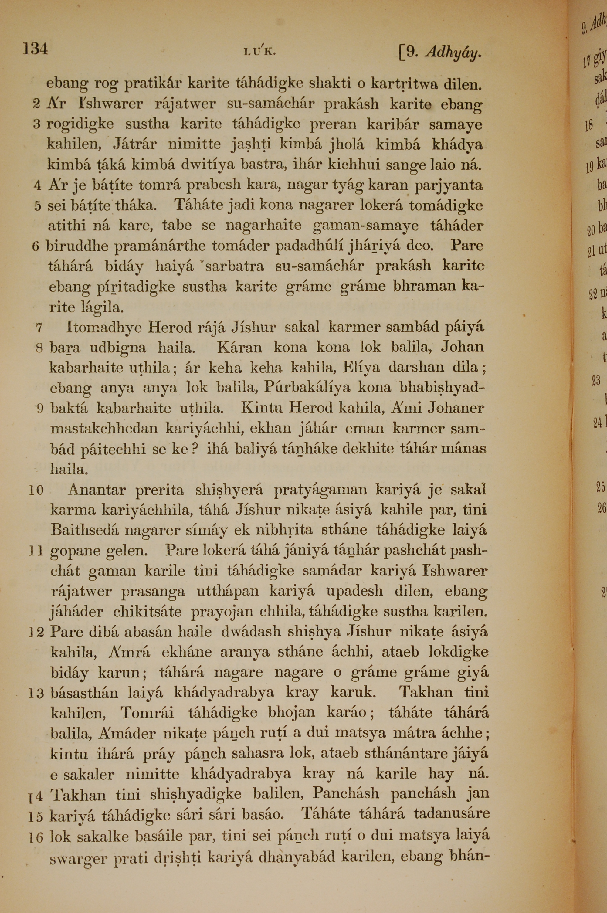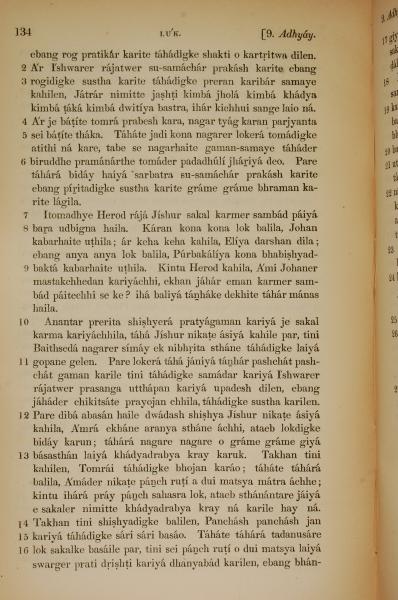 1839年孟加拉語新約全書 路加福音 9 章 2 節到 9 章 16 節