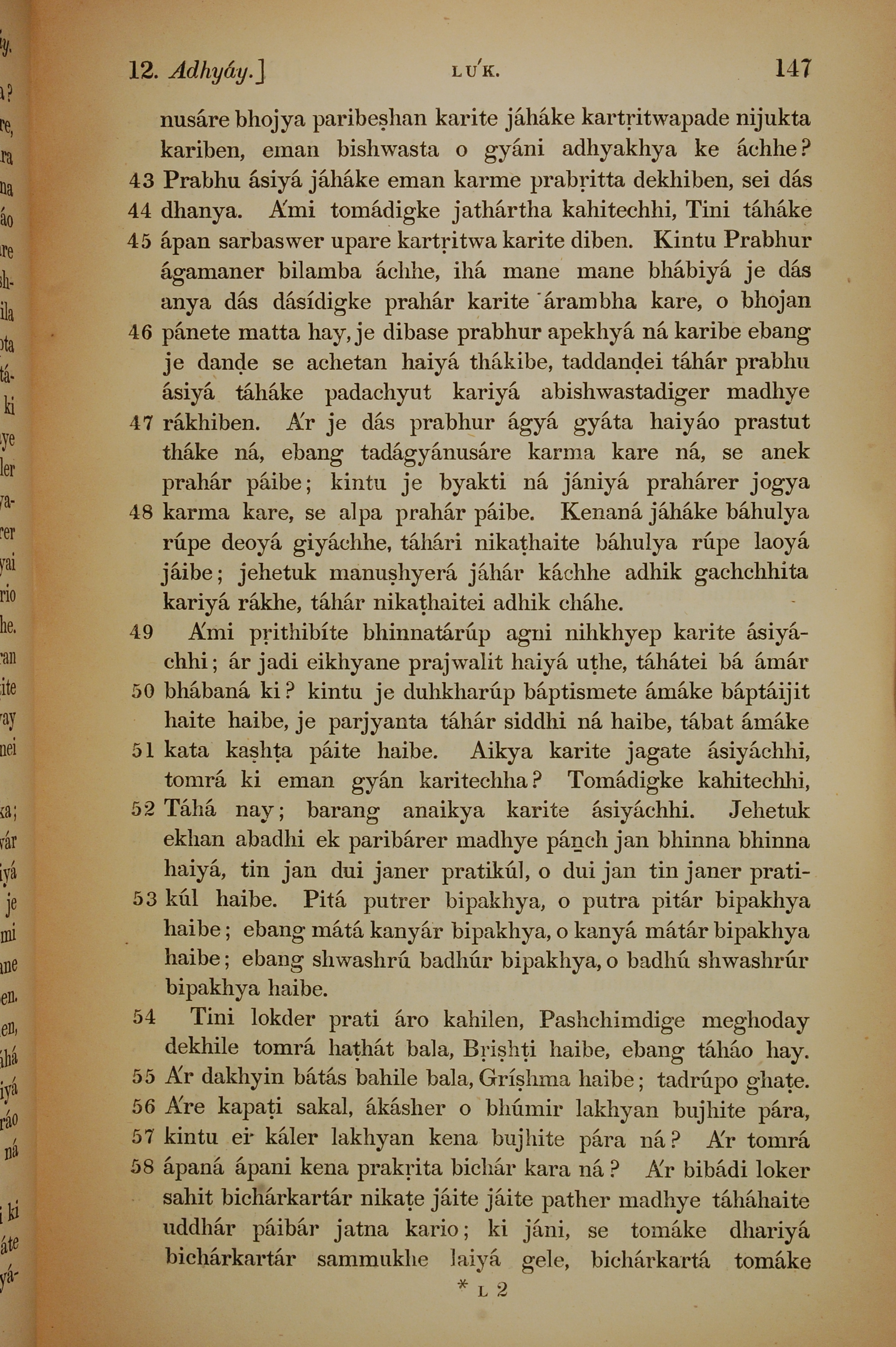 1839年孟加拉語新約全書 路加福音 12 章 43 節到 12 章 58 節