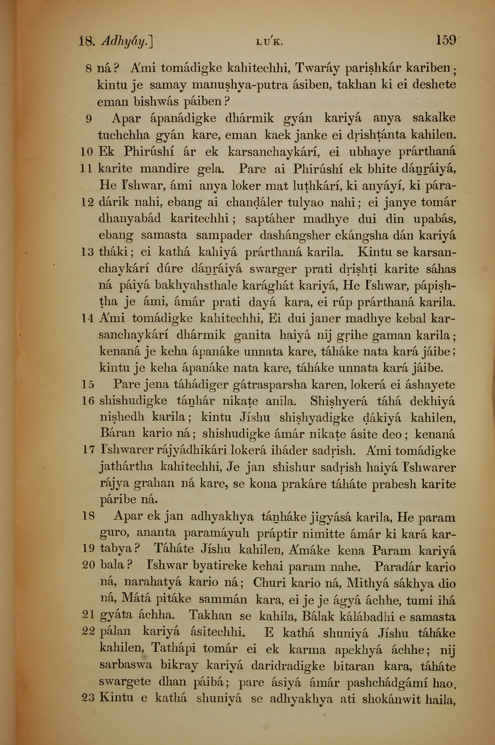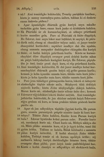 1839年孟加拉語新約全書 路加福音 18 章 8 節到 18 章 23 節