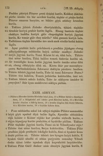 1839年孟加拉語新約全書 路加福音 22 章 62 節到 23 章 6 節