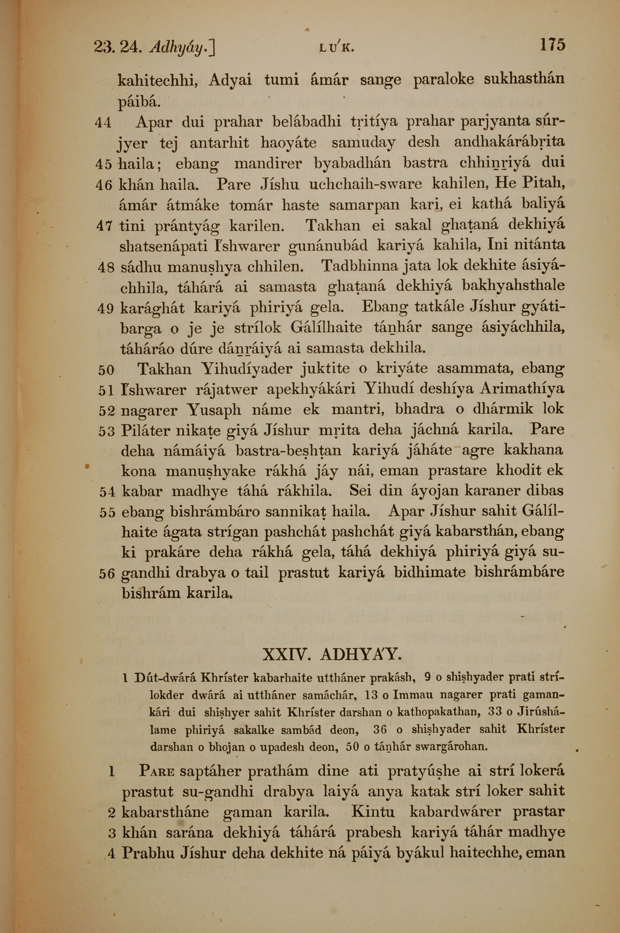 1839年孟加拉語新約全書 路加福音 23 章 44 節到 24 章 4 節