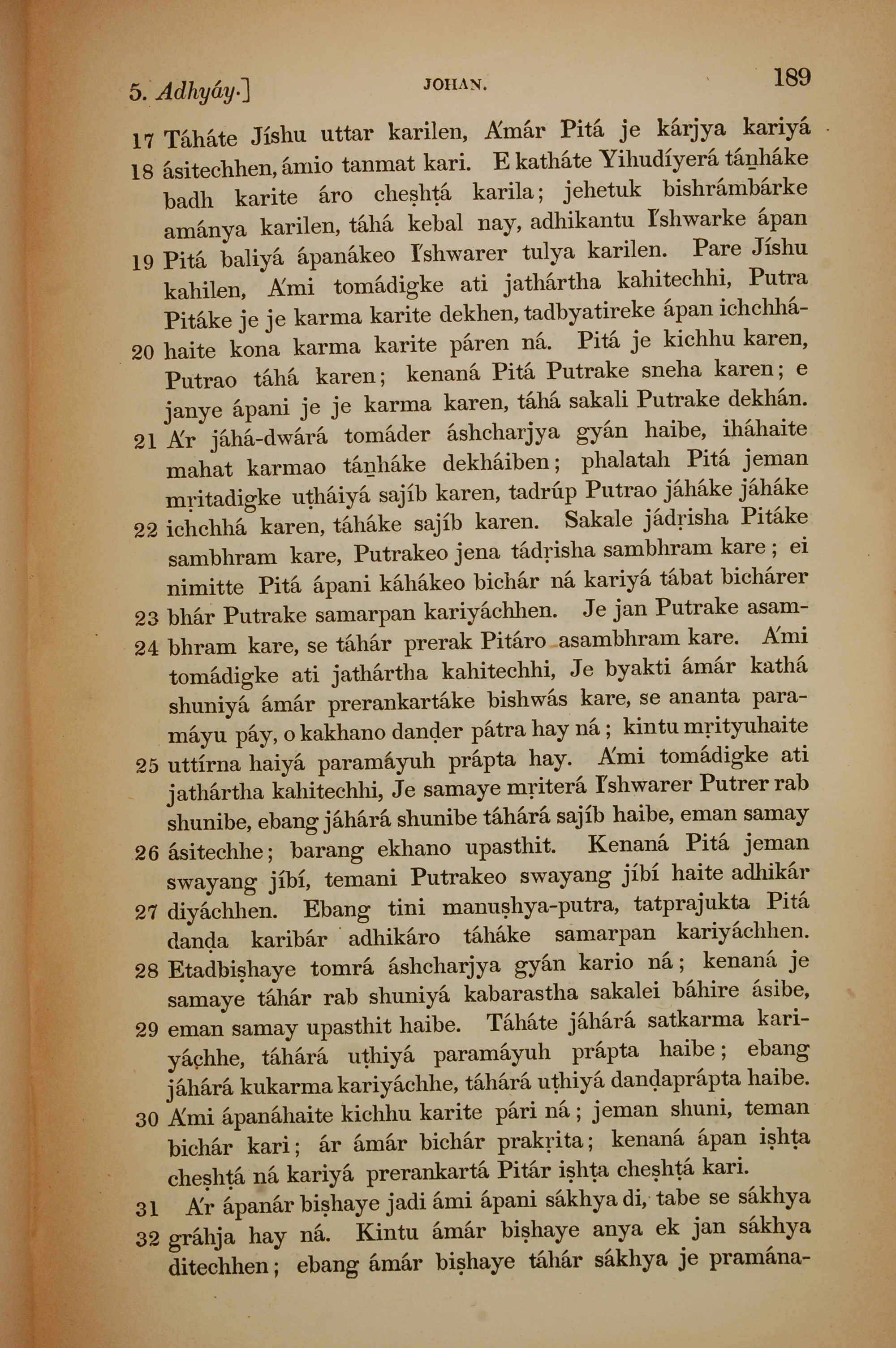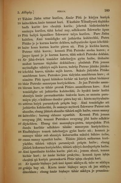 1839年孟加拉語新約全書 約翰福音 5 章 17 節到 5 章 32 節