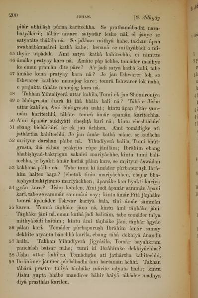 1839年孟加拉語新約全書 約翰福音 8 章 45 節到 8 章 59 節