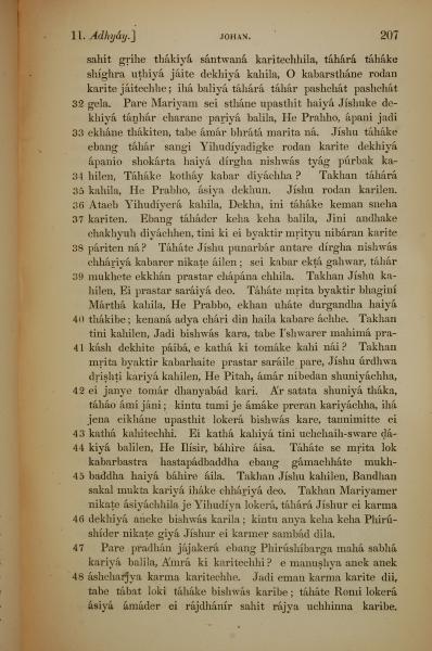 1839年孟加拉語新約全書 約翰福音 11 章 31 節到 11 章 48 節