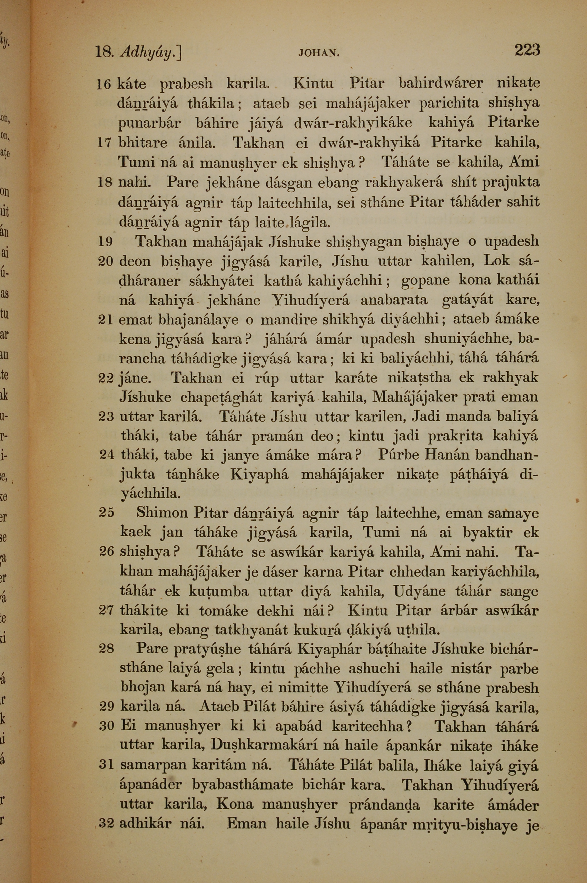 1839年孟加拉語新約全書 約翰福音 18 章 16 節到 18 章 32 節