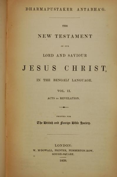 1839年孟加拉語新約全書 使徒行傳 0 章 到 0 章