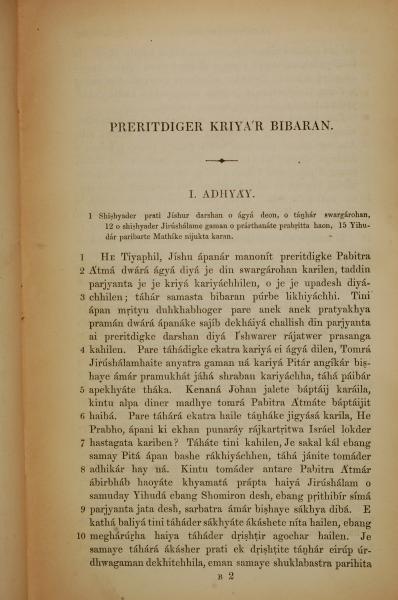 1839年孟加拉語新約全書 使徒行傳 1 章 1 節到 1 章 10 節