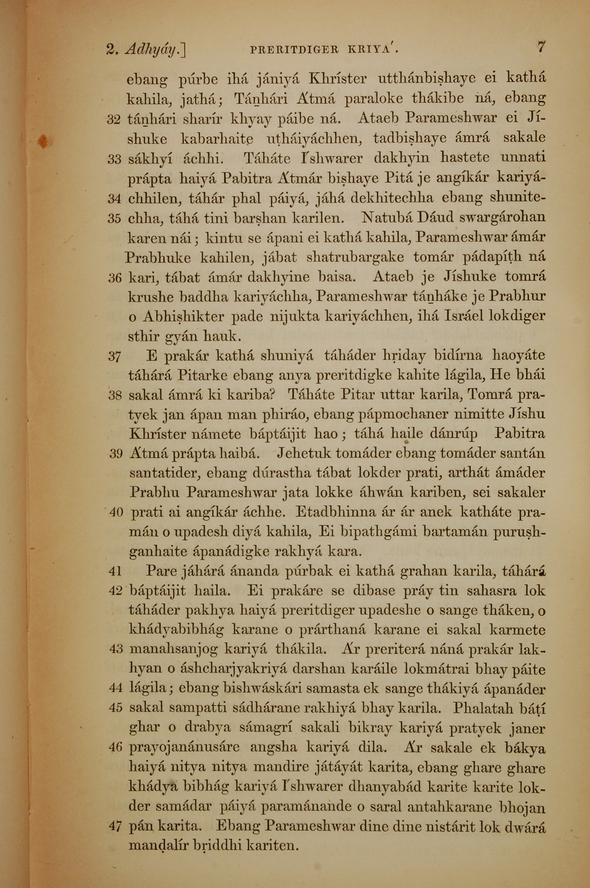 1839年孟加拉語新約全書 使徒行傳 2 章 32 節到 2 章 47 節