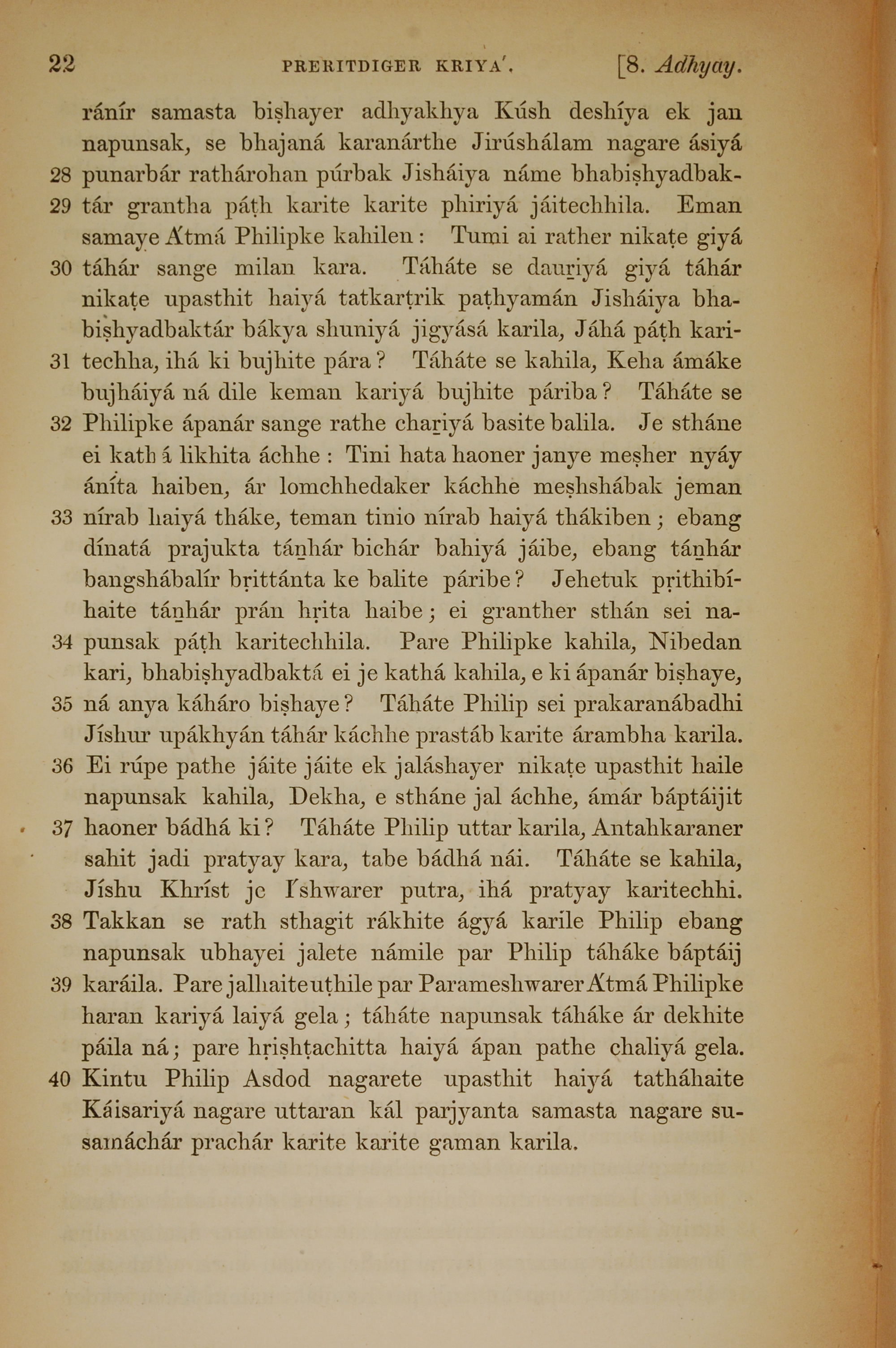 1839年孟加拉語新約全書 使徒行傳 8 章 28 節到 8 章 40 節