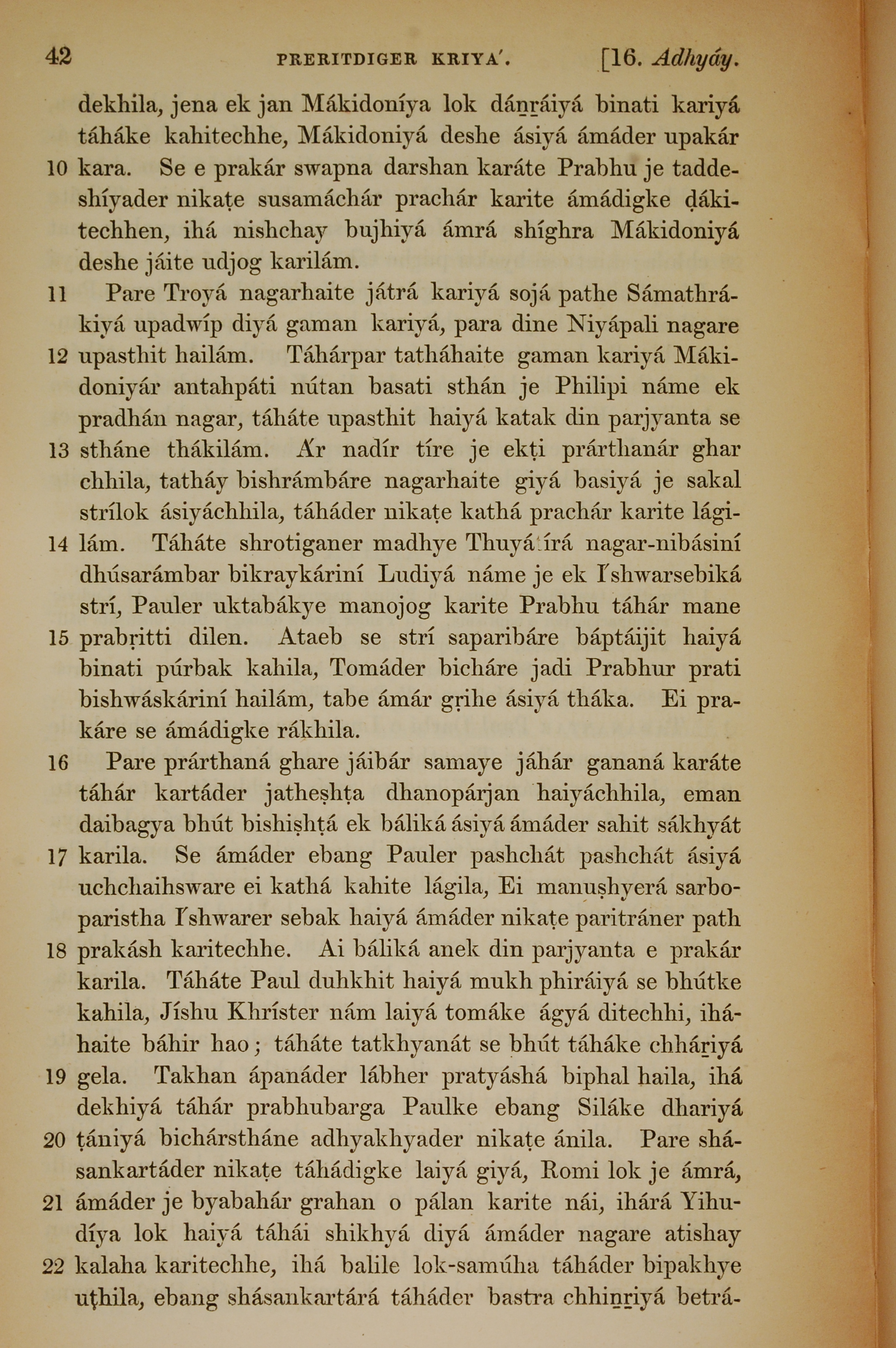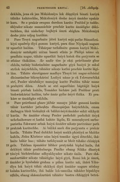 1839年孟加拉語新約全書 使徒行傳 16 章 10 節到 16 章 22 節