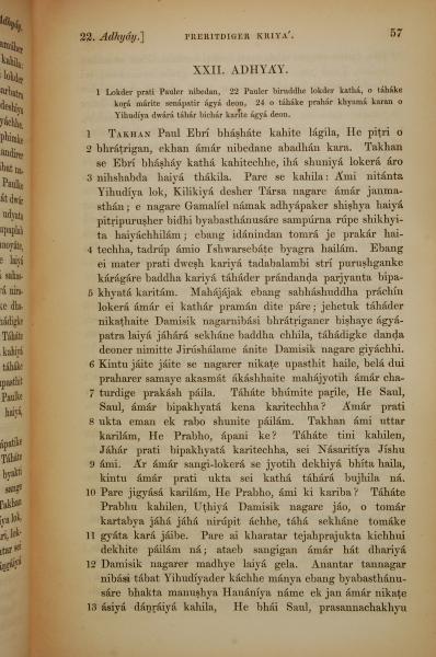1839年孟加拉語新約全書 使徒行傳 22 章 1 節到 22 章 13 節