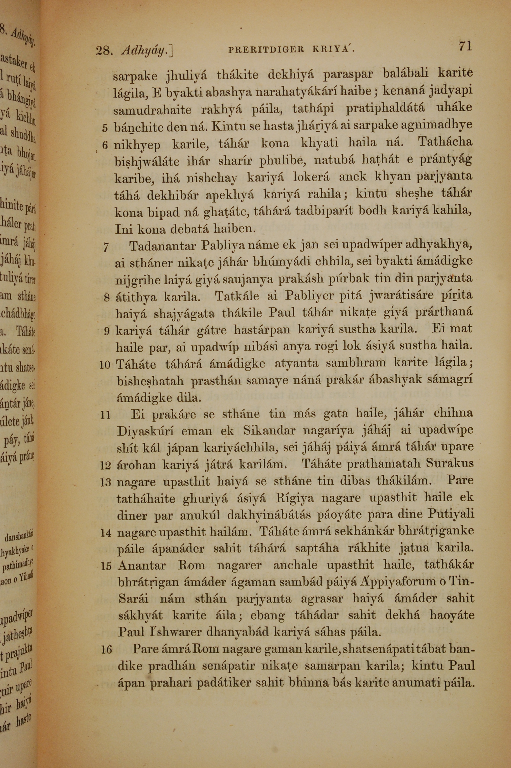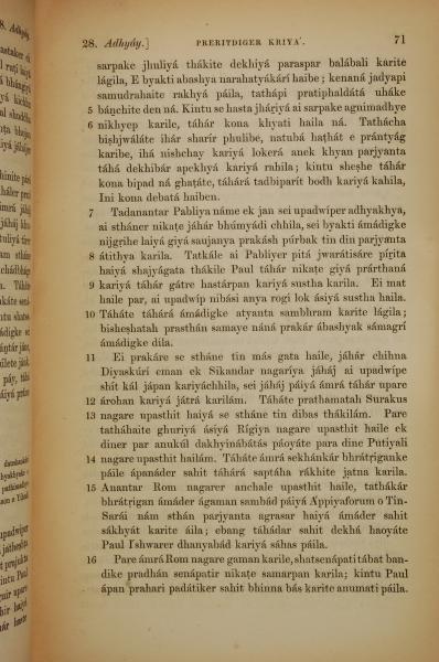 1839年孟加拉語新約全書 使徒行傳 28 章 5 節到 28 章 16 節