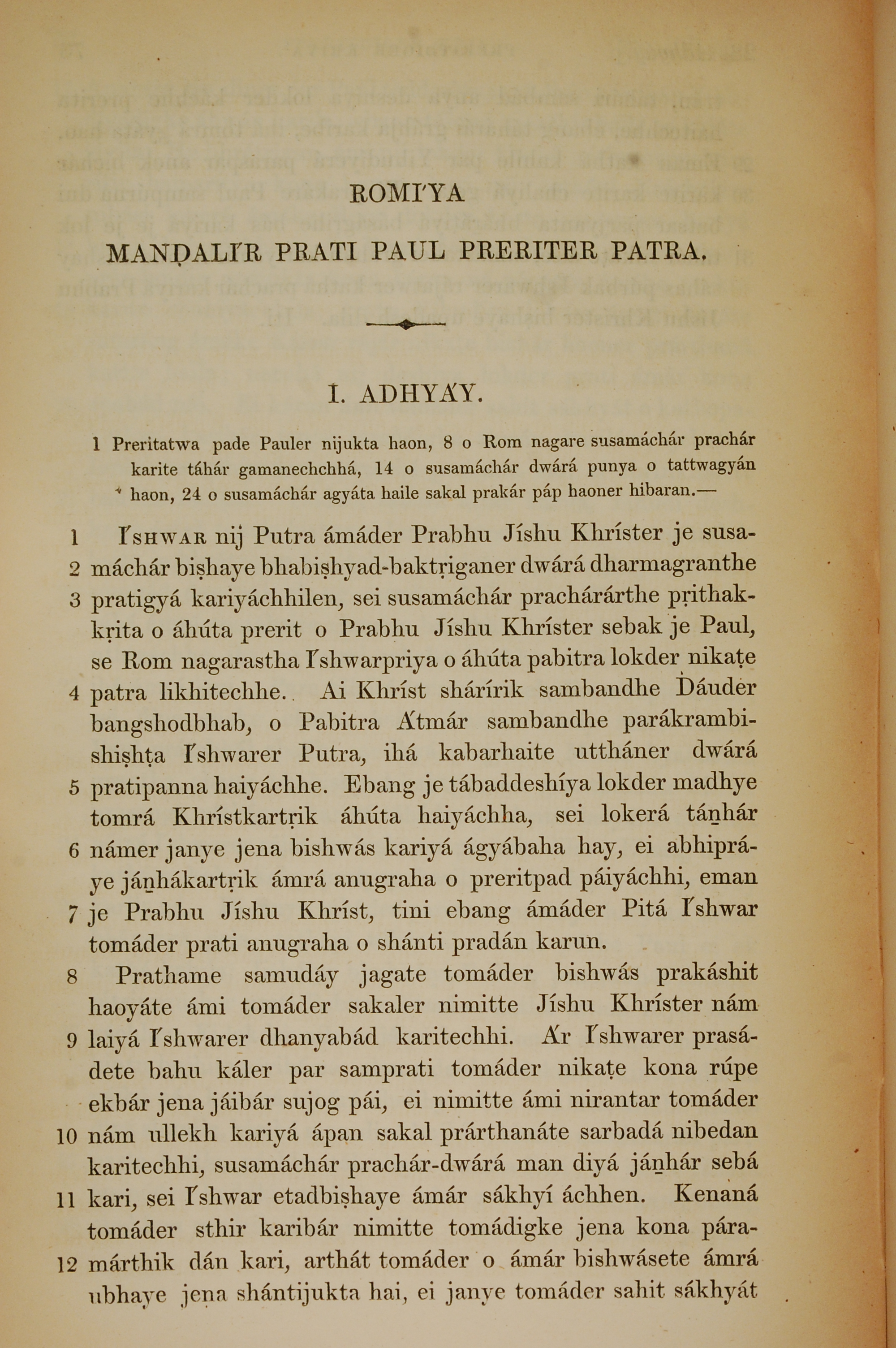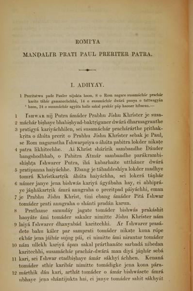 1839年孟加拉語新約全書 羅馬書 1 章 1 節到 1 章 12 節