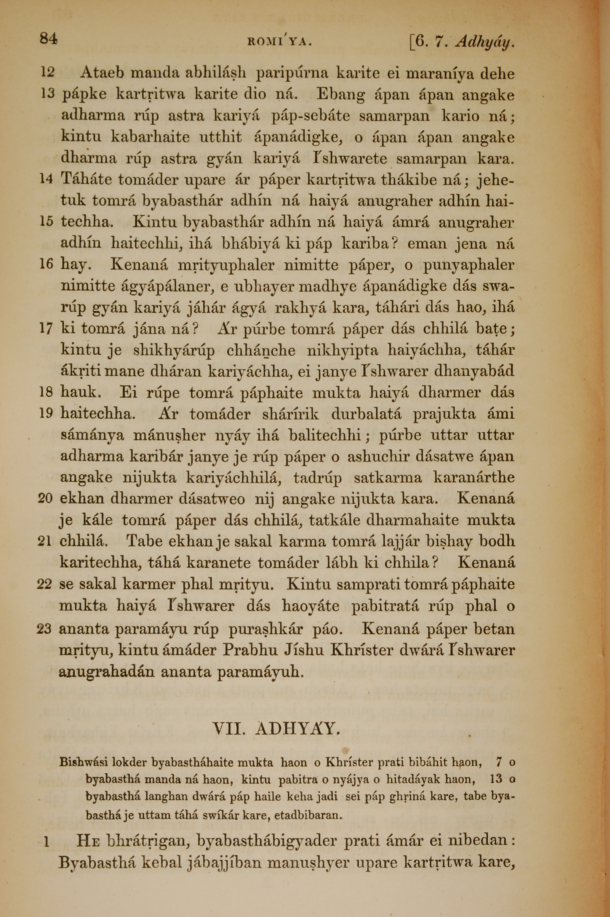 1839年孟加拉語新約全書 羅馬書 6 章 12 節到 7 章 1 節