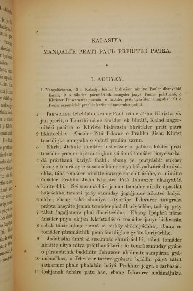 1839年孟加拉語新約全書 歌羅西書 1 章 1 節到 1 章 11 節