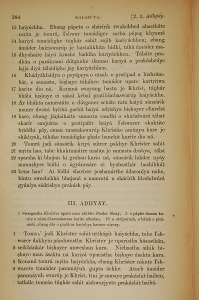 1839年孟加拉語新約全書 歌羅西書 2 章 13 節到 3 章 4 節
