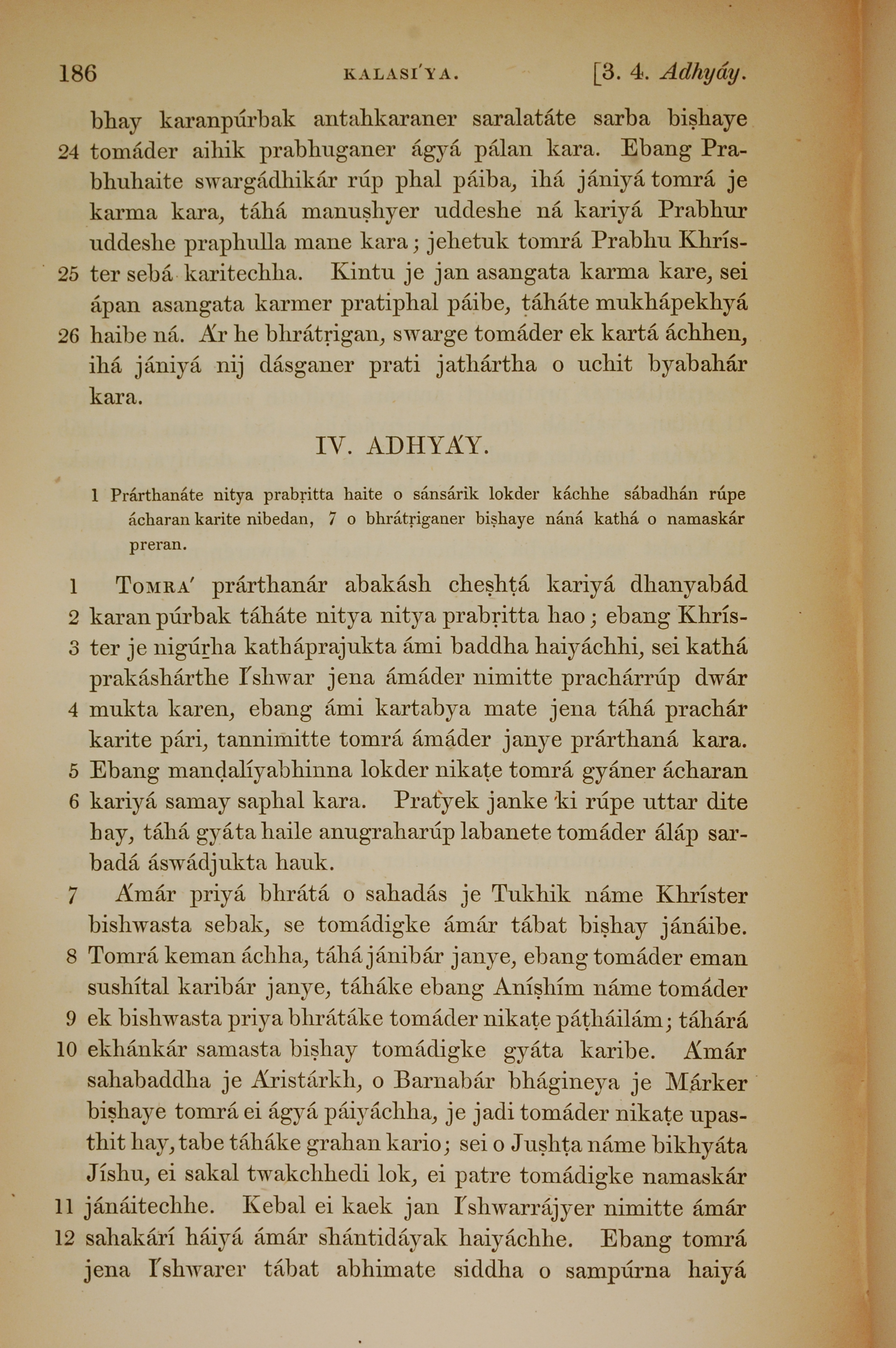 1839年孟加拉語新約全書 歌羅西書 3 章 24 節到 4 章 12 節