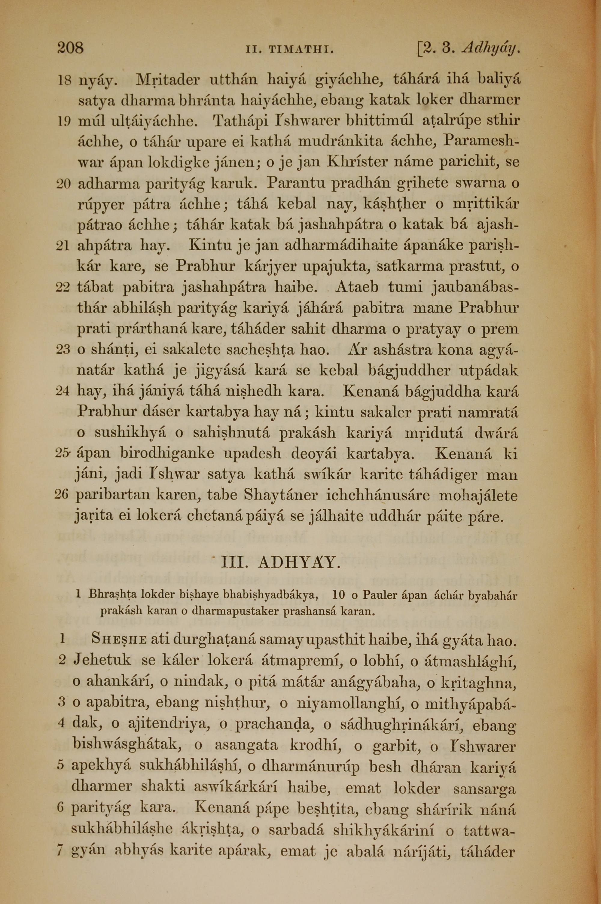 1839年孟加拉語新約全書 提摩太後書 2 章 18 節到 3 章 7 節