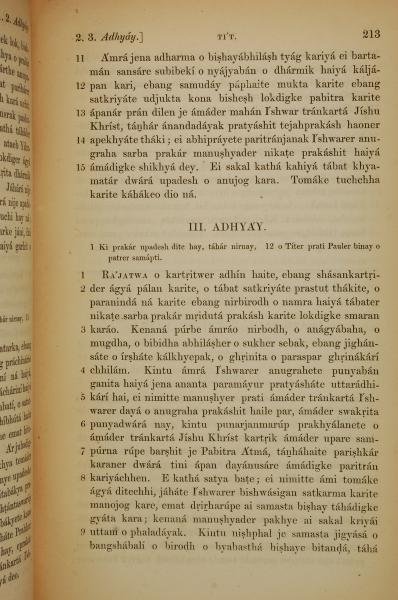 1839年孟加拉語新約全書 提多書 2 章 11 節到 3 章 9 節