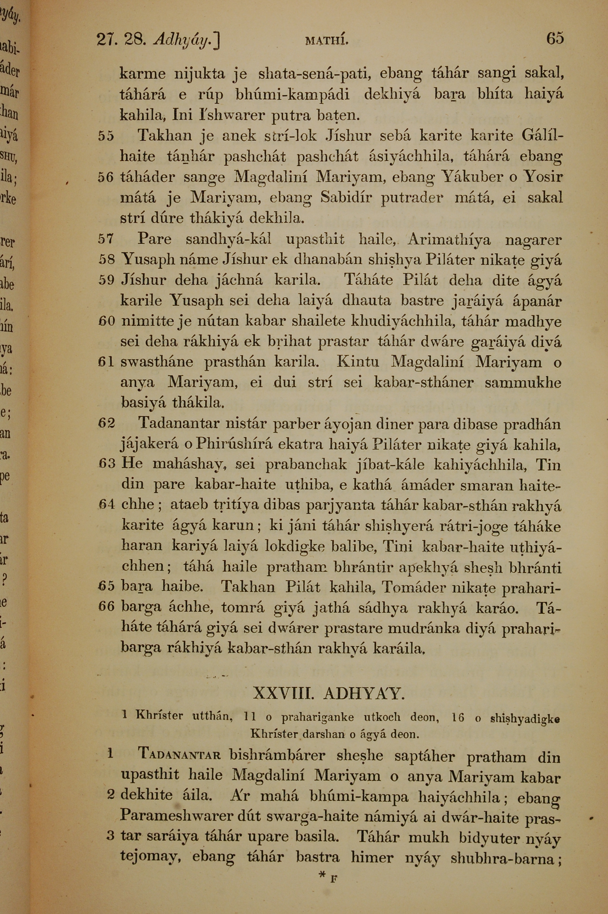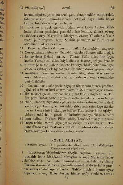 1839年孟加拉語新約全書 馬太福音 27 章 55 節到 28 章 3 節