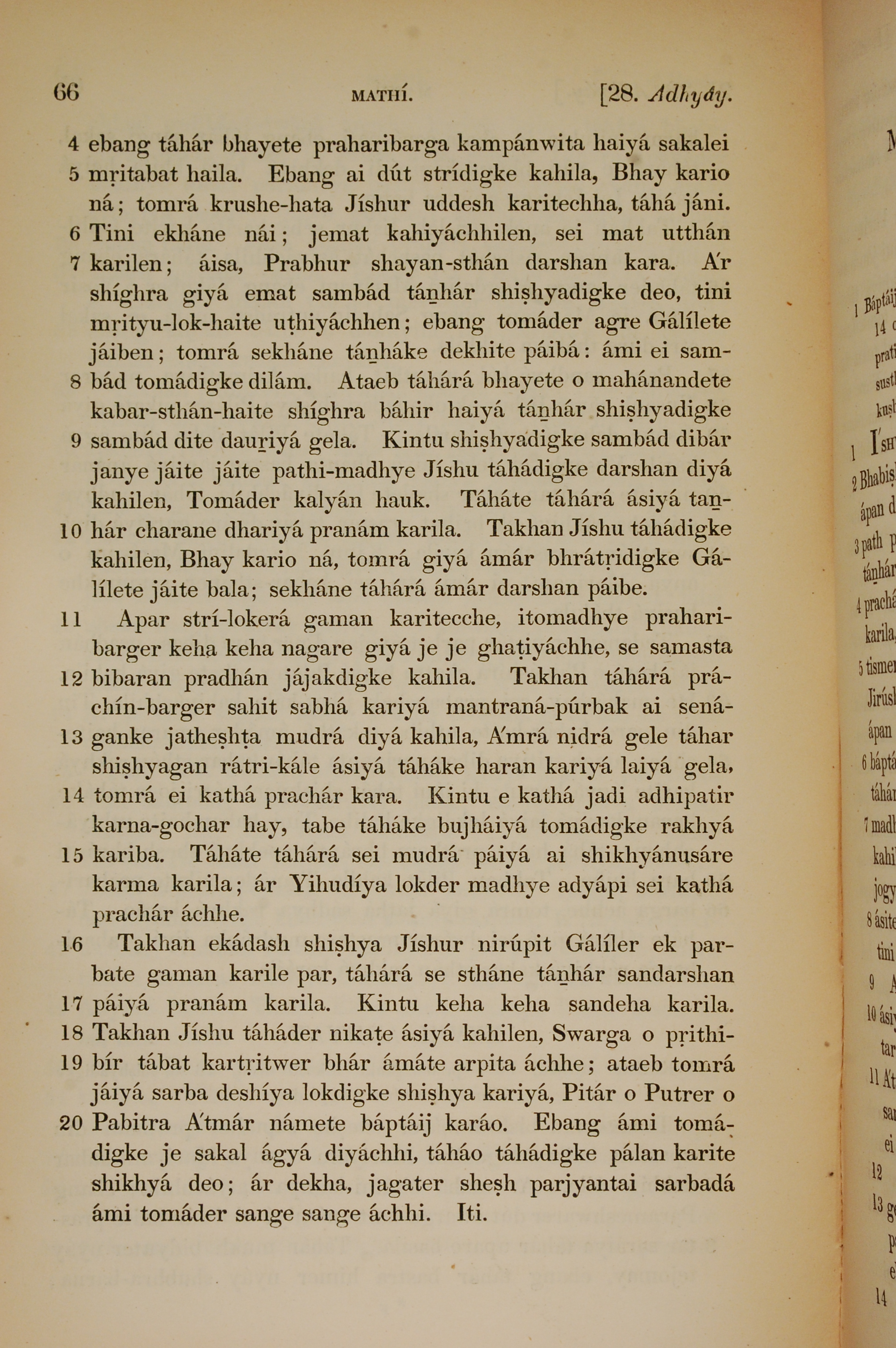1839年孟加拉語新約全書 馬太福音 28 章 4 節到 28 章 20 節