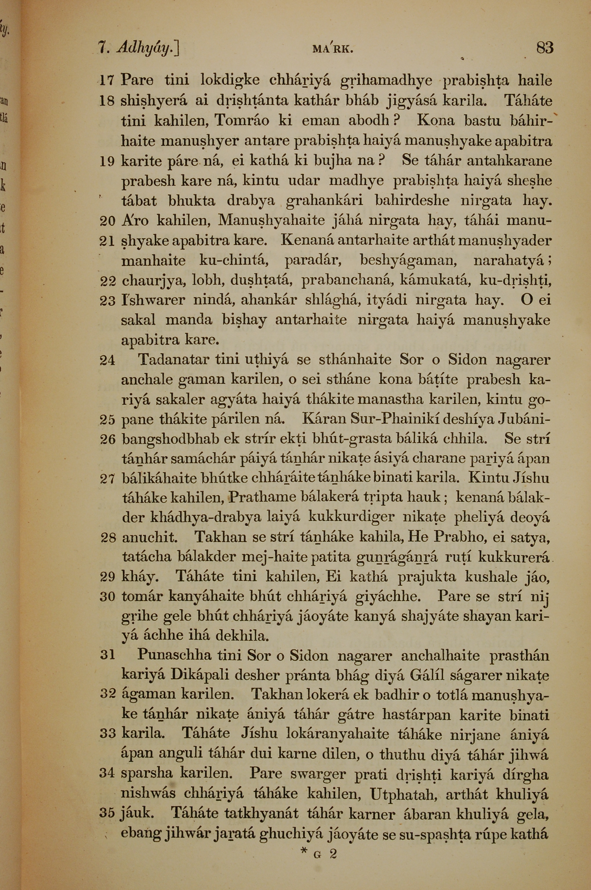 1839年孟加拉語新約全書 馬可福音 7 章 17 節到 7 章 35 節