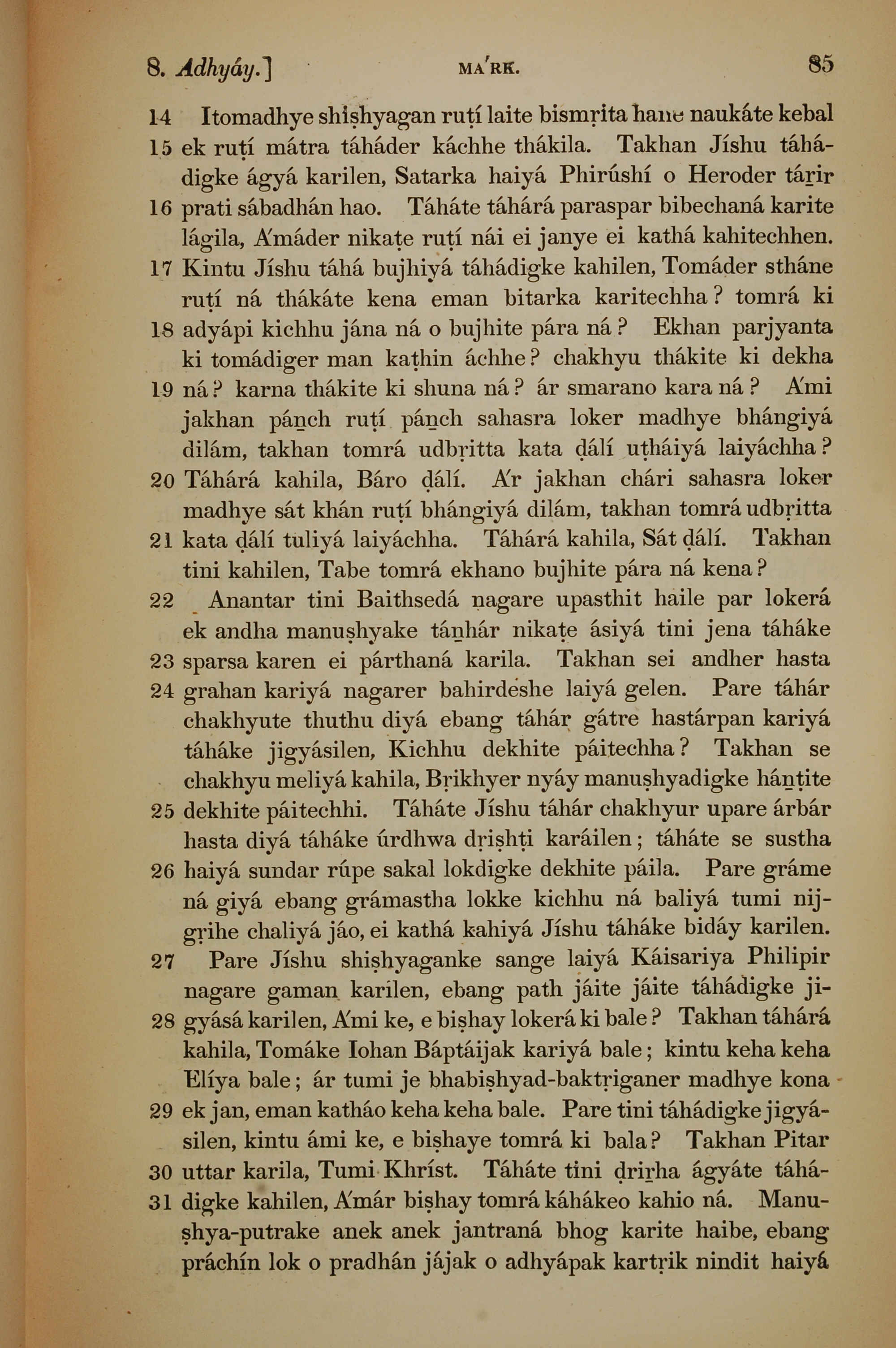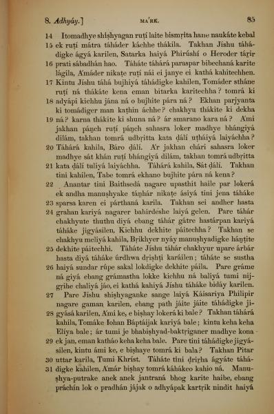 1839年孟加拉語新約全書 馬可福音 8 章 14 節到 8 章 31 節