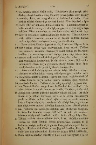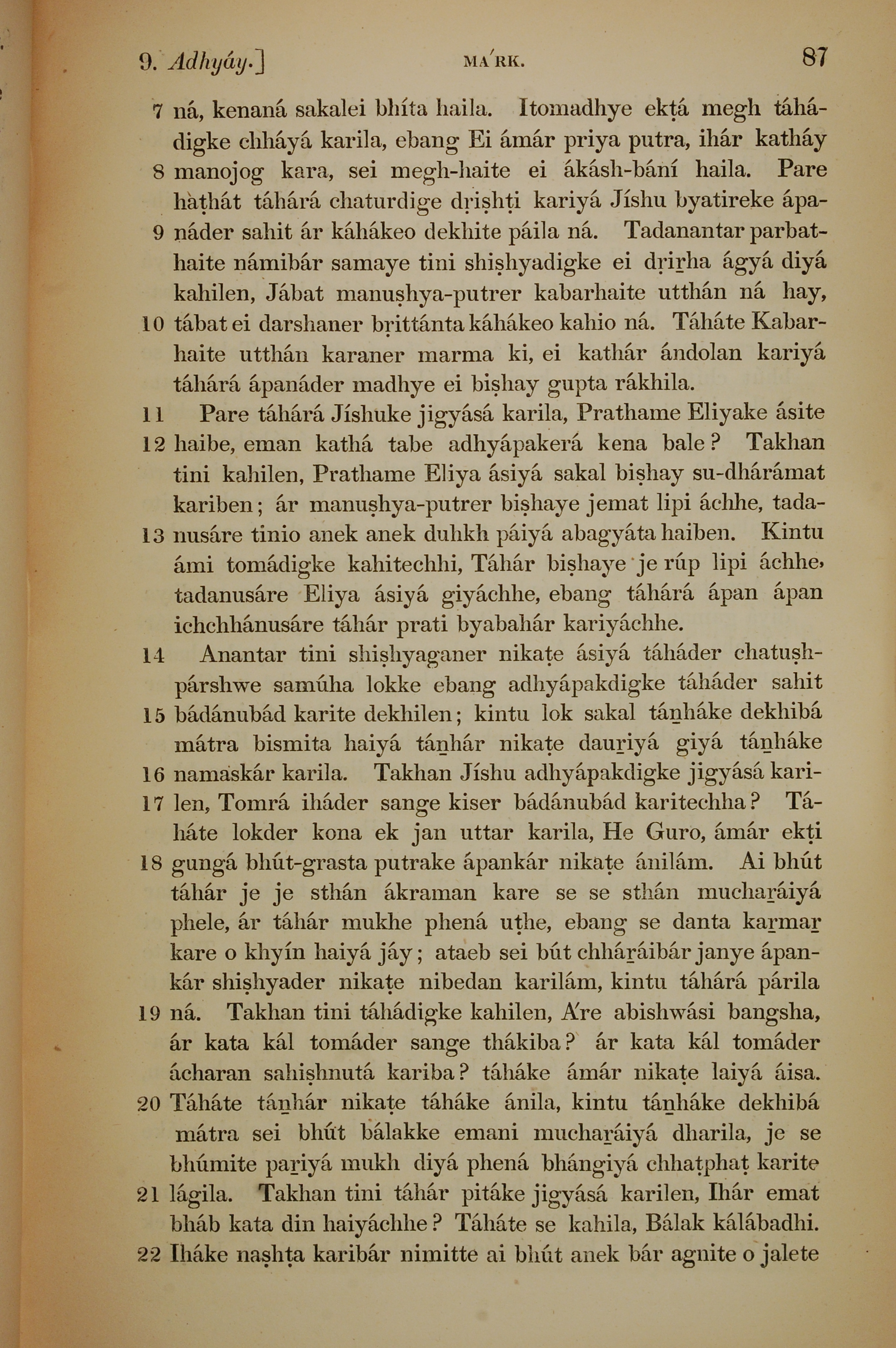 1839年孟加拉語新約全書 馬可福音 9 章 7 節到 9 章 22 節