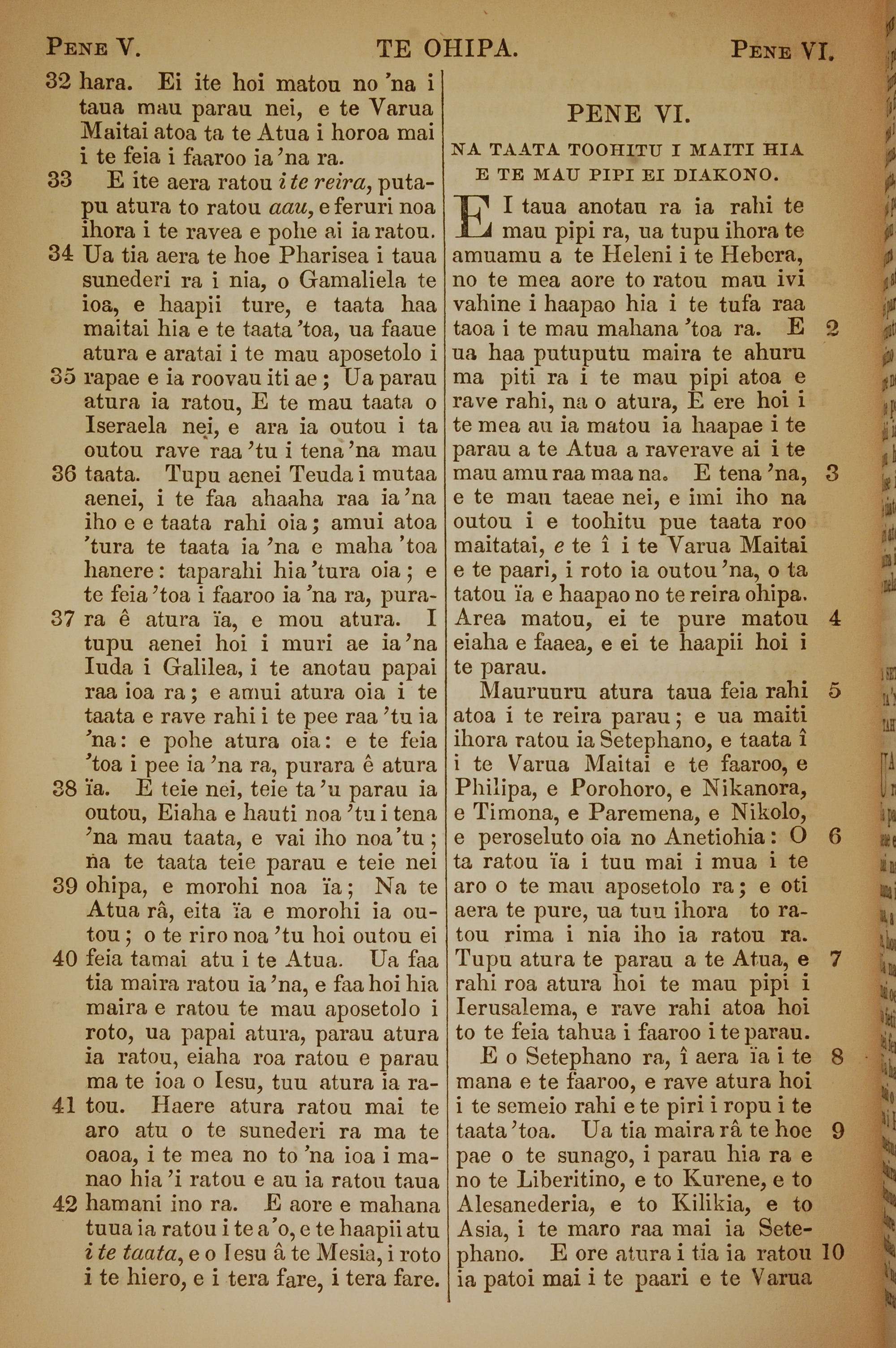 1853年塔希提語新約全書 使徒行傳 5 章 32 節到 6 章 10 節