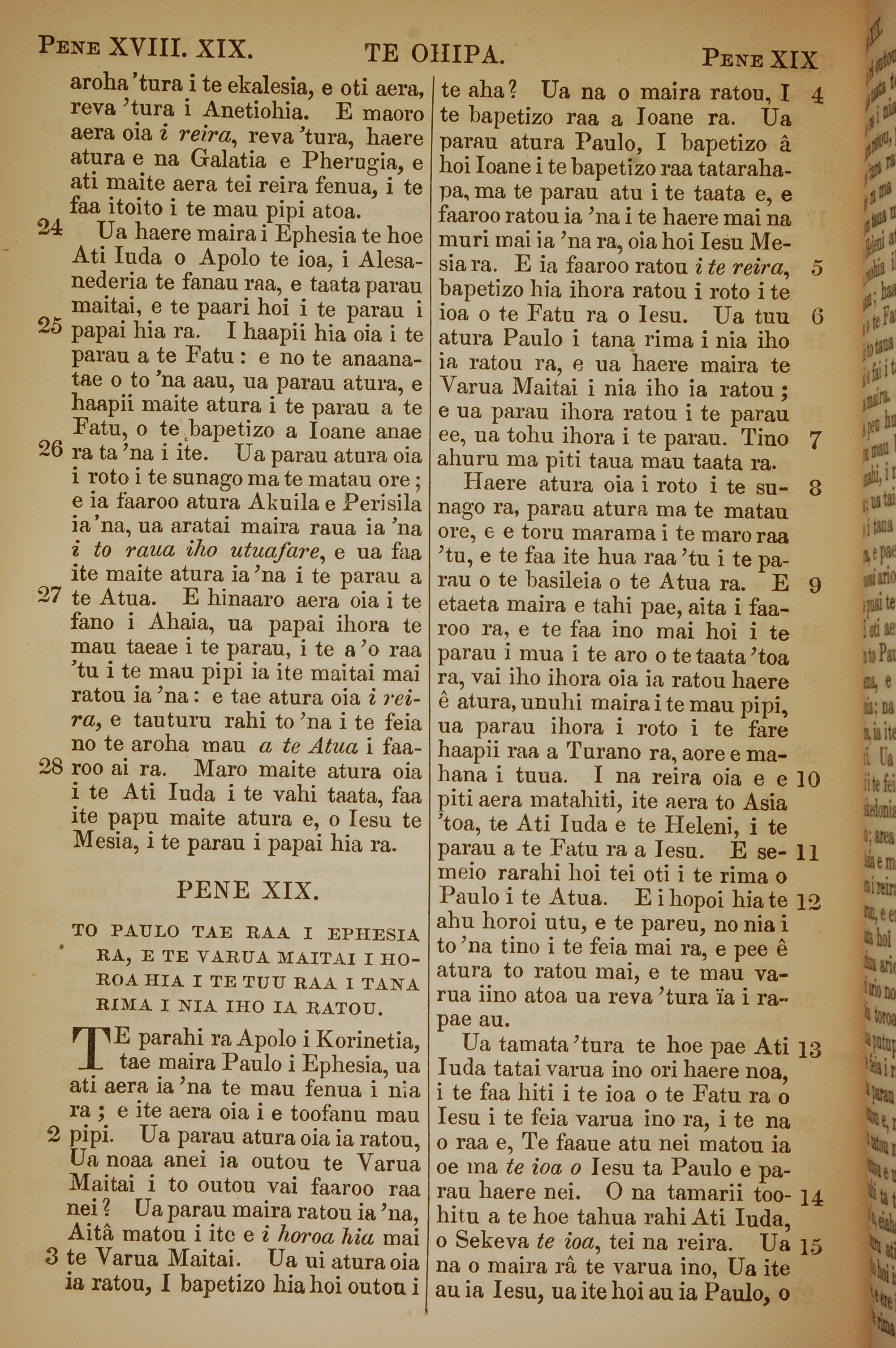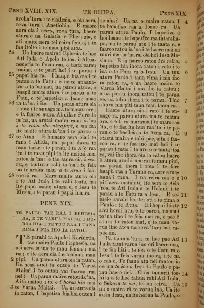 1853年塔希提語新約全書 使徒行傳 18 章 23 節到 19 章 15 節