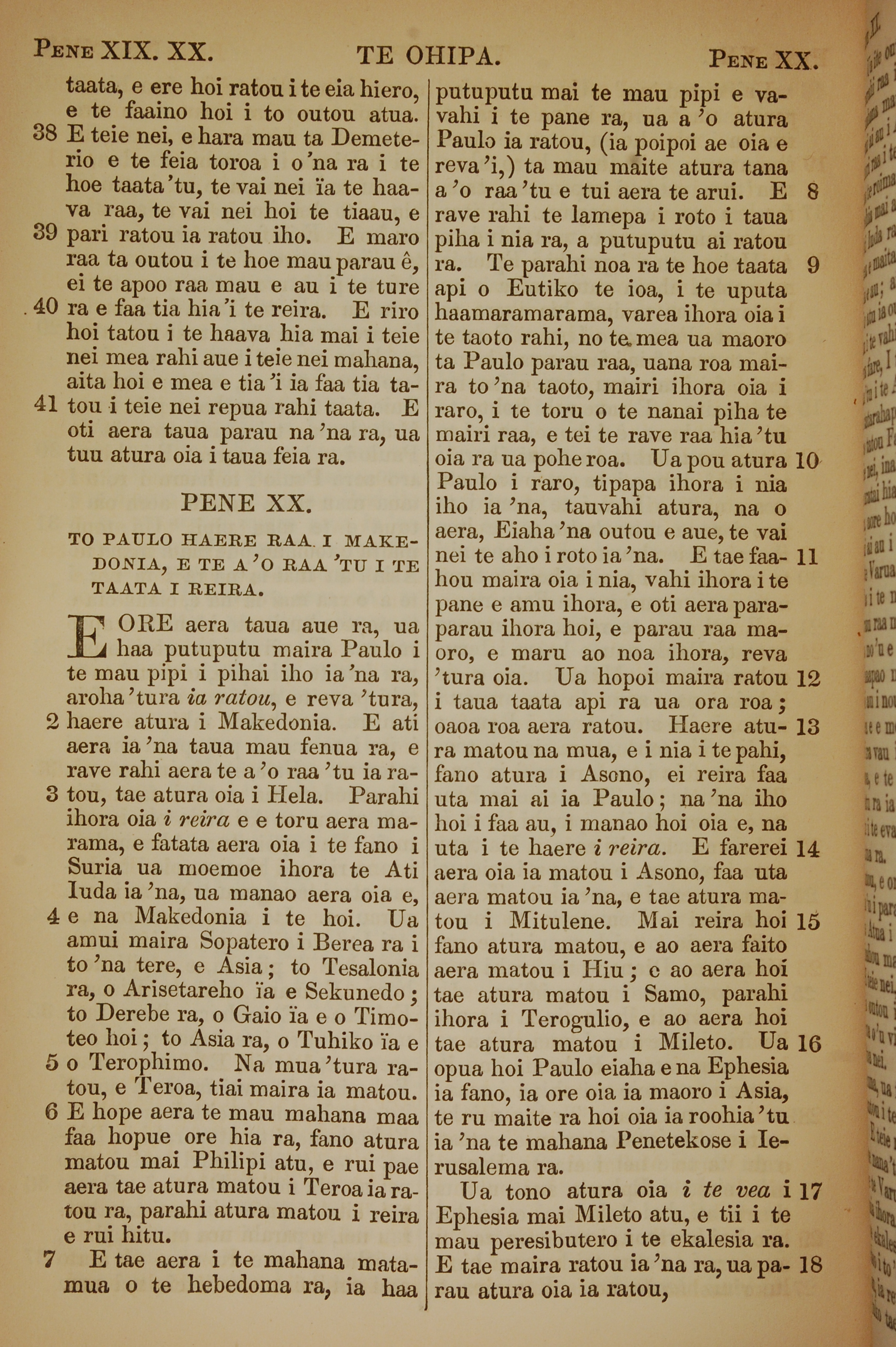 1853年塔希提語新約全書 使徒行傳 19 章 38 節到 20 章 18 節