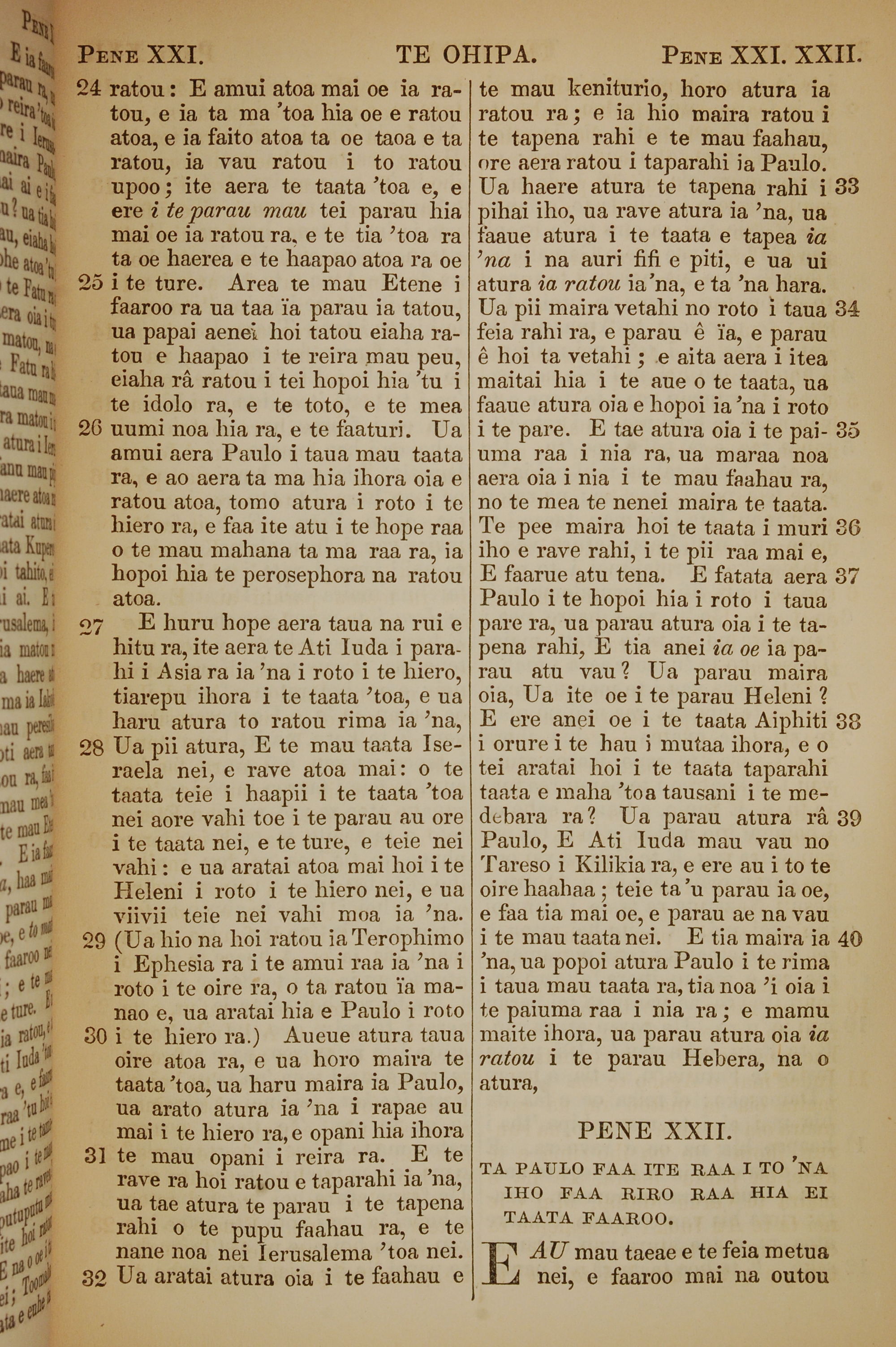 1853年塔希提語新約全書 使徒行傳 21 章 24 節到 22 章 1 節
