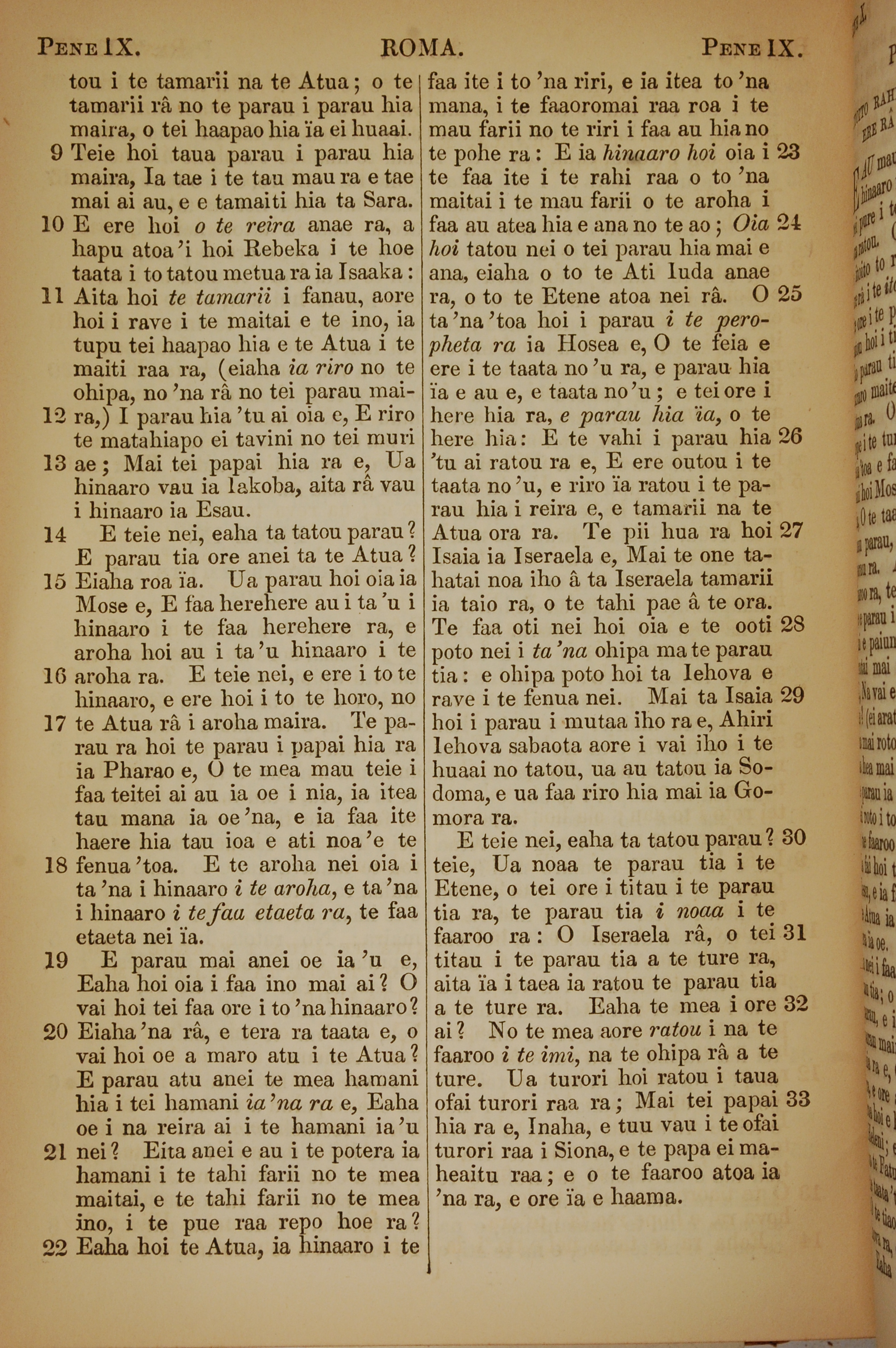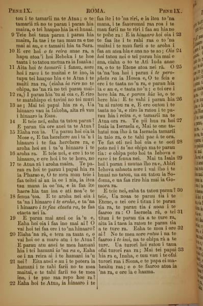 1853年塔希提語新約全書 羅馬書 9 章 9 節到 9 章 33 節