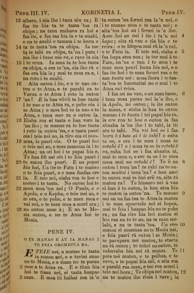 1853年塔希提語新約全書 哥林多前書 3 章 13 節到 4 章 12 節