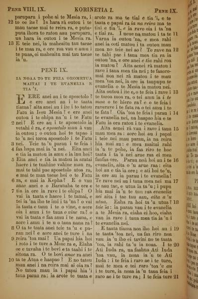 1853年塔希提語新約全書 哥林多前書 8 章 12 節到 9 章 21 節